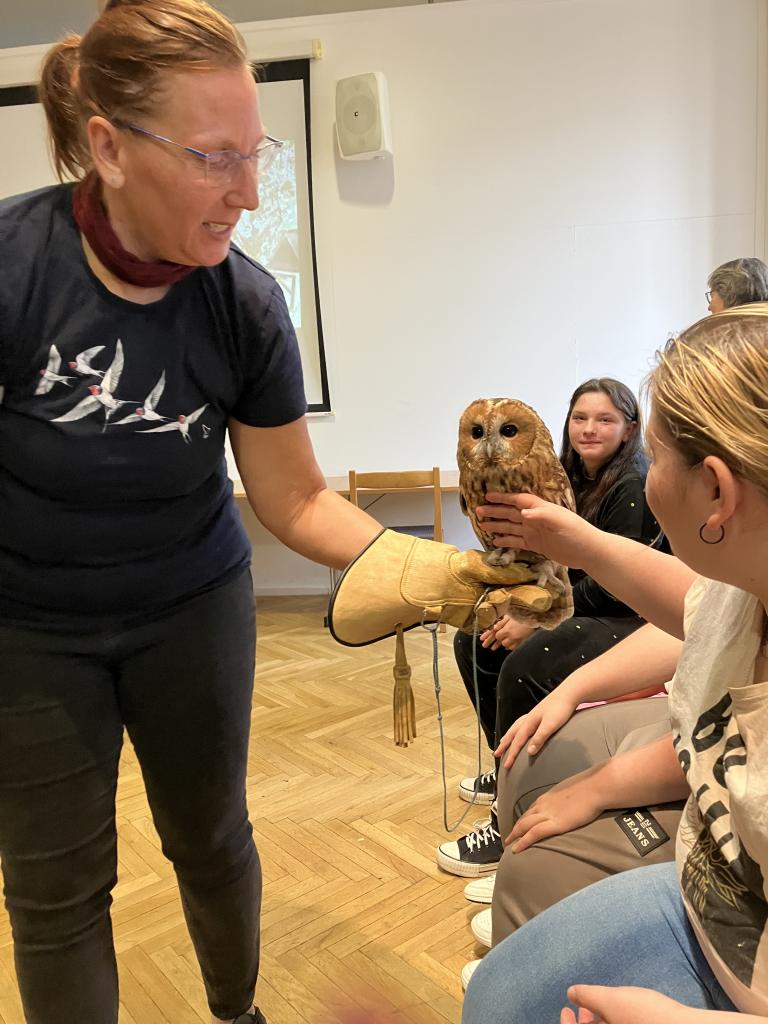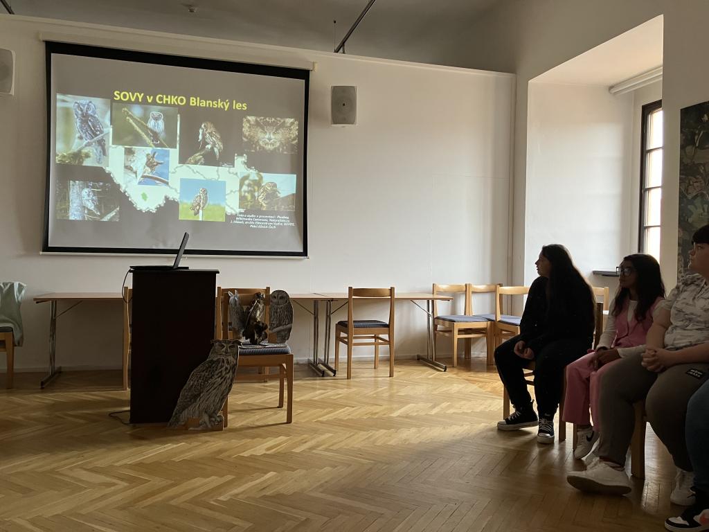 Vzdělávací program Sovy nás seznámil se sovami, které žijí v Blanském lese. Dozvěděli jsme se mnoho zajímavého z jejich života. Mohli jsme si pohladit jejich peří, vyzkoušet ostrost jejich drápů. A také jsme se potěšili se živou sovou Pušťou.