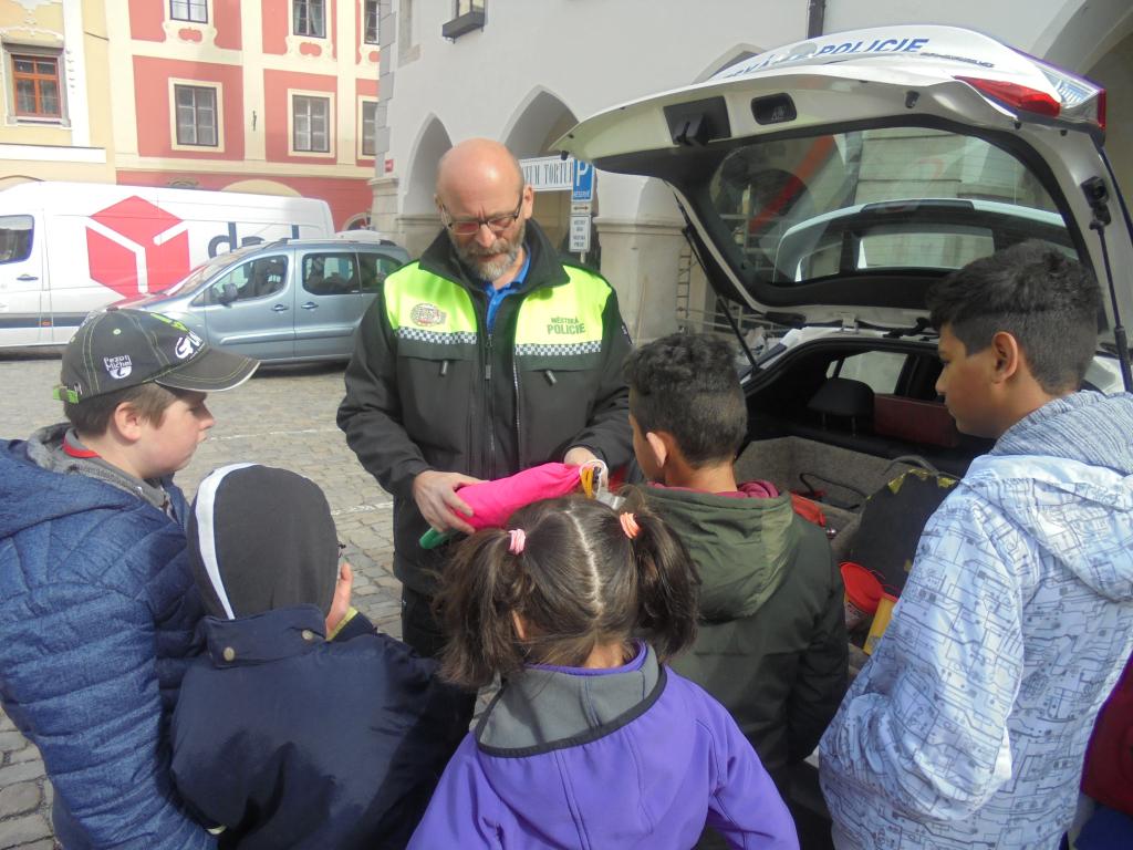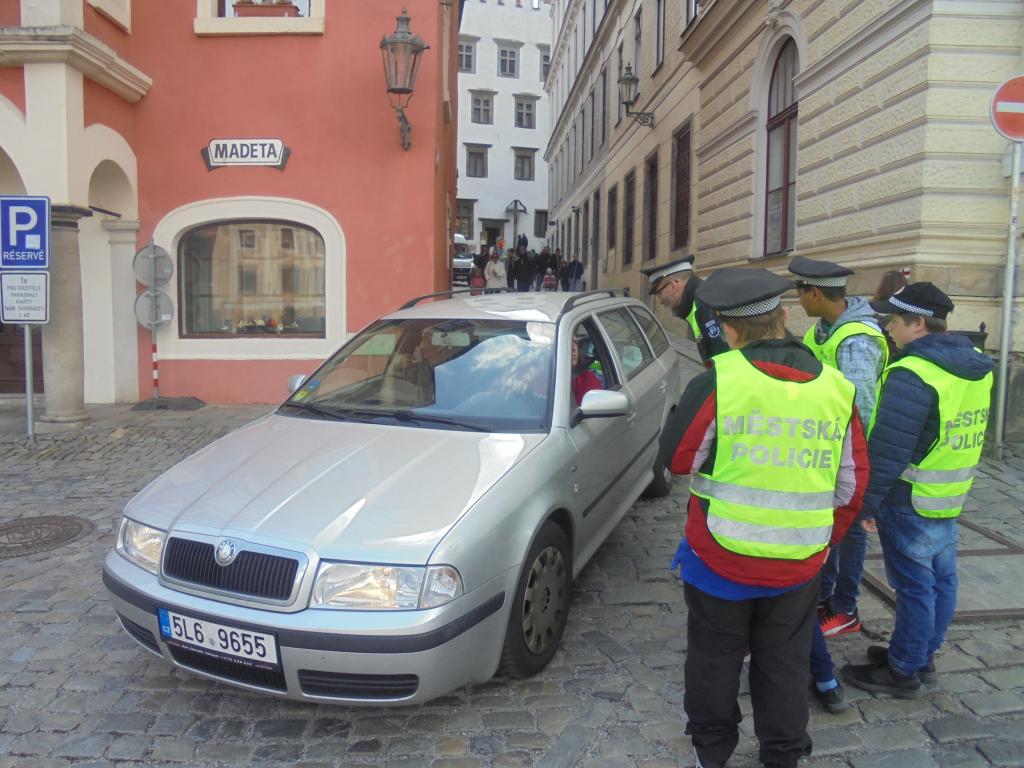 Školní akci s Městskou policií ČK "Výkon služby v ulicích" si jako první z naší školy vyzkoušely děti z II.A a V.S tříd. Začaly na služebně městské policie a pokračovaly procházkou městem, kontrolou aut, parkovišť, pomocí cizincům... Zažily jeden ze služebních dnů městského policisty.
