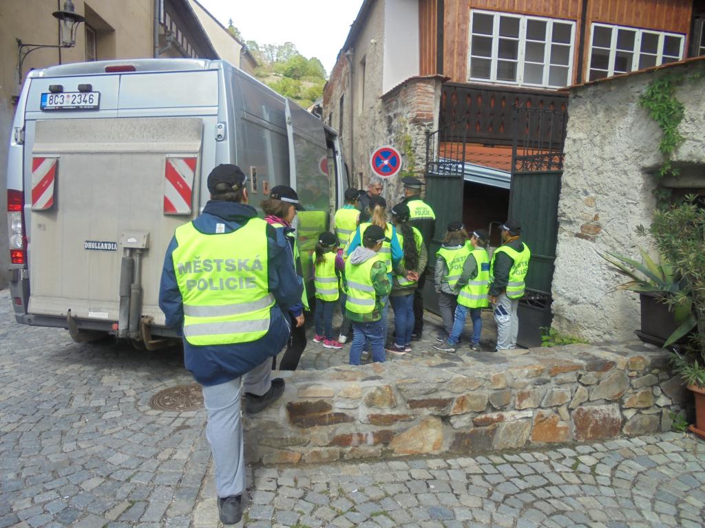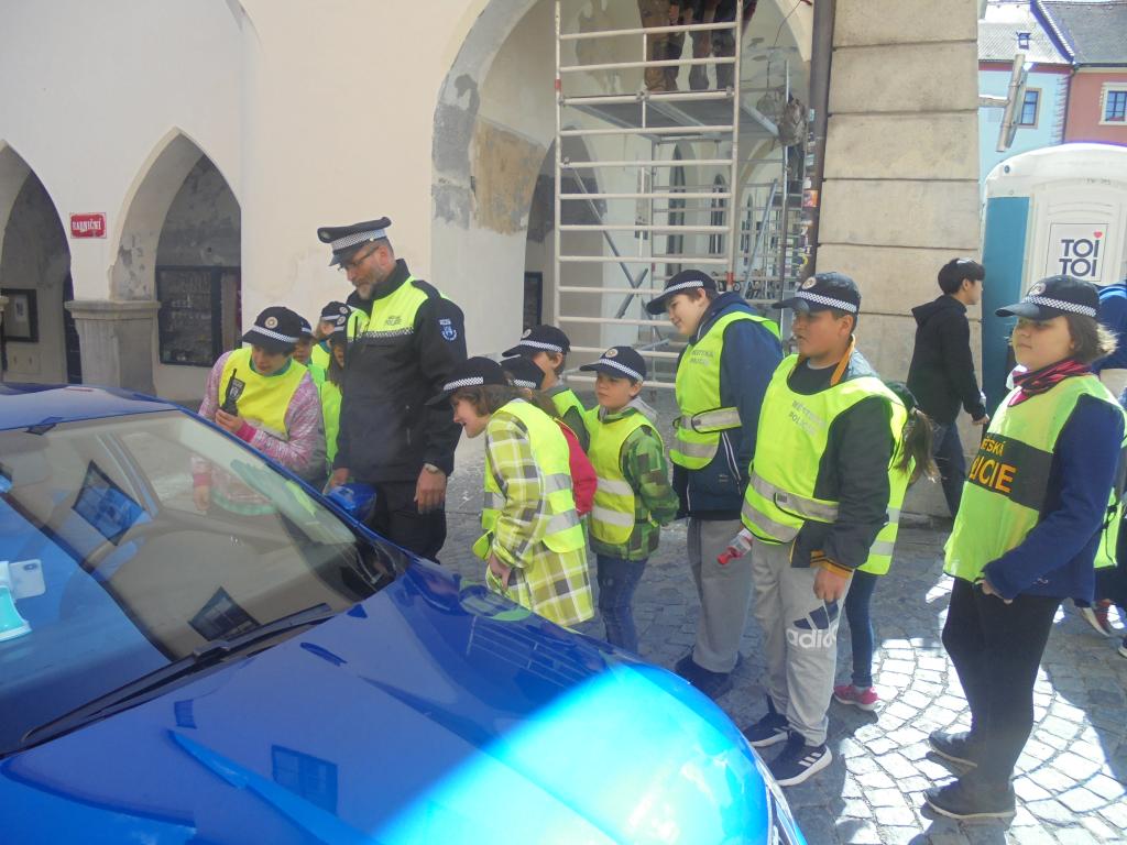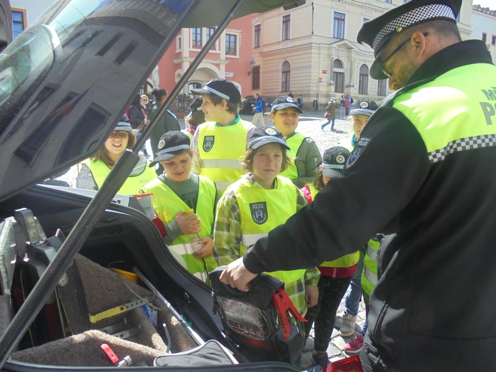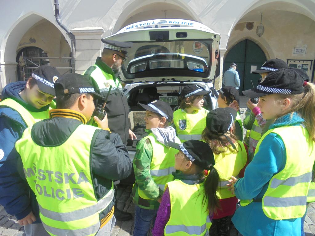 Tentokrát si práci městských policistů v ulicích města vyzkoušely děti z I. a IV. třídy.