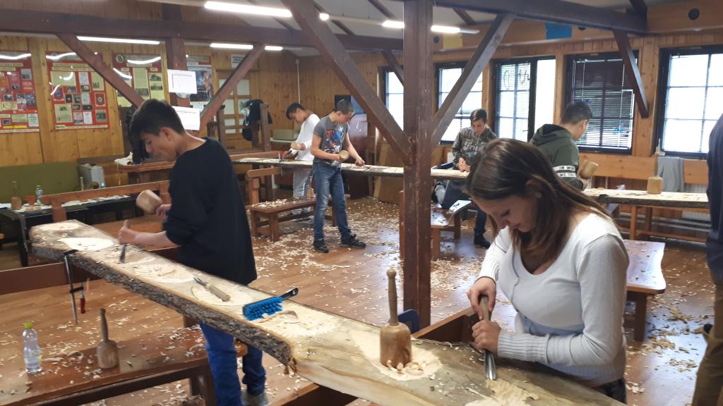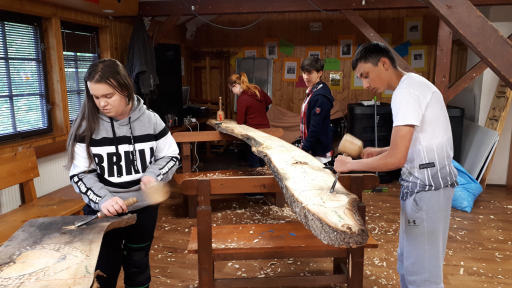 Žáci 2. stupně pracovali v Boudě se dřevem a s dláty - vytvářeli ozdobné ornamenty do dřeva.