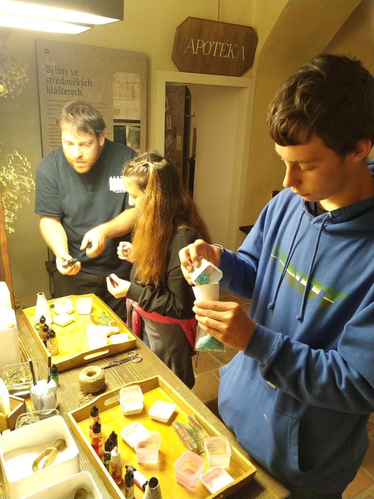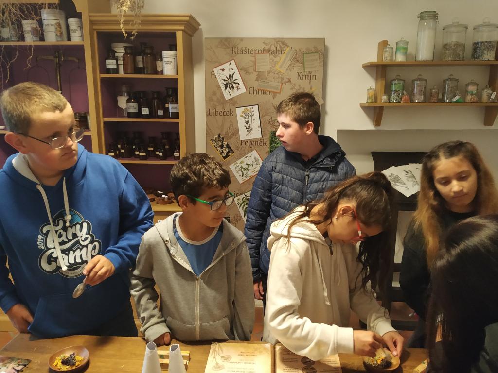 Žáci si vyzkoušeli vyrobit vlastní pečeť, jiní si sami namíchali bylinný čaj nebo voňavou koupelovou sůl, další poznali originální knihtisk či psaní husím brkem. Zkoušeli jsme si středověké oblečení i těžkou drátěnou košili. Zavítali jsme do klášterního sklepení, objevili alchymistickou dílnu a mnoho jiného. Na závěr jsme se pobavili ve strašidelném půdním bludišti.