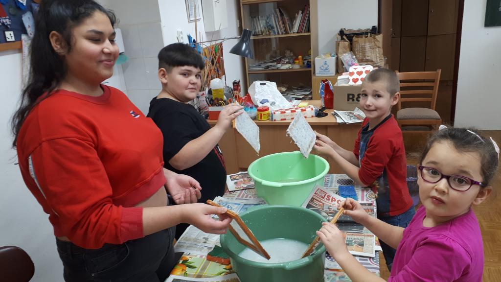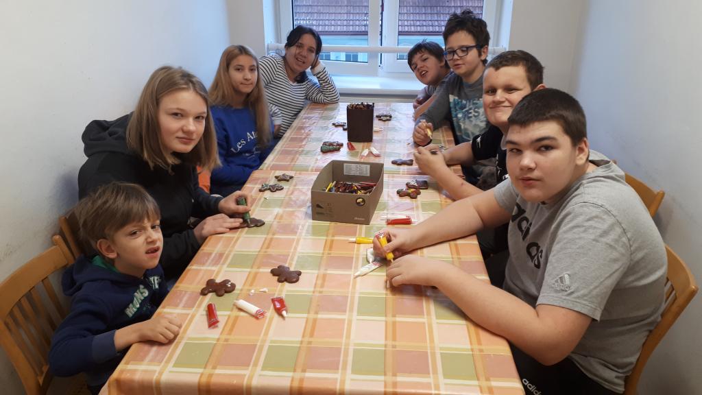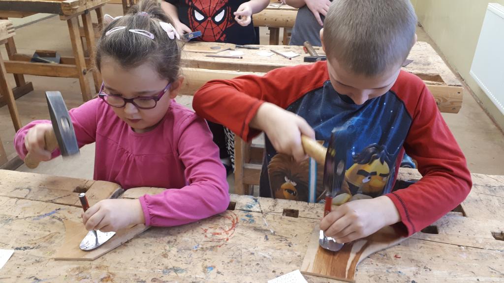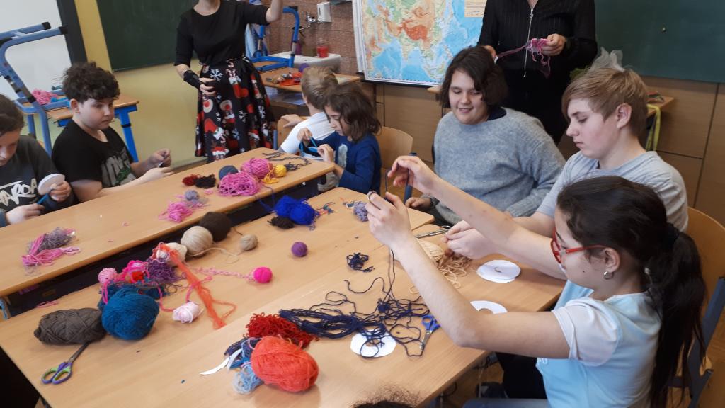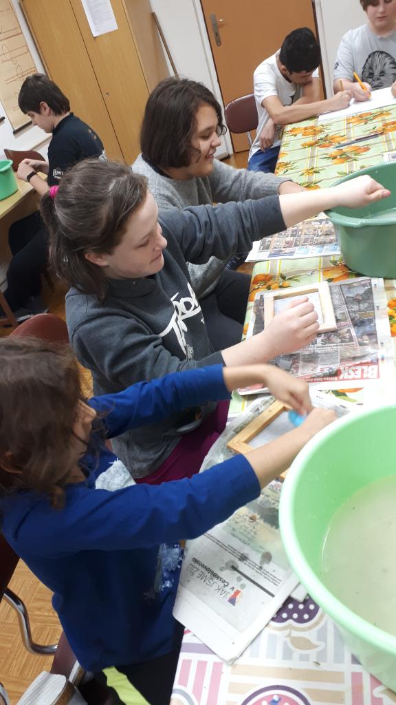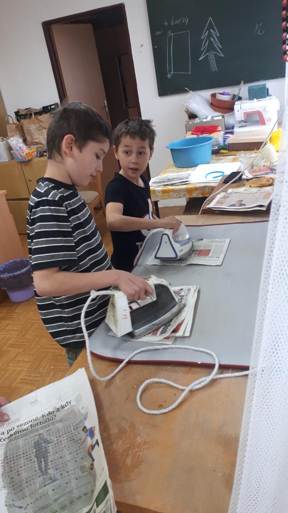 Žáci si pomocí tepacího nářadí a kusů plechu vytvořili ozdoby na stromeček. Na připravené perníčky si žáci bílkovou polevou malovali ornamenty. K tomu si ještě vymalovali papírové perníčky. Z připravených vláken vln si žáci technikou omotávaní kolem papírového kruhu vytvořili kouli jako ozdobu na stromek. Koule jsou jedno nebo vícebarevné. Pomocí techniky výroby ručního papíru si žáci vyrobili jmenovky na dárky. Všechny dílny byly krásně připraveny. Žáci tvořili se zaujetím a z každé dílny si domů odnesou hotové výrobky. Dílničky provázela vánoční nálada s hudbou.
