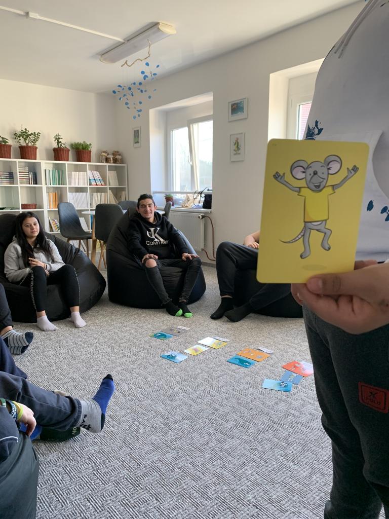 Žáci si nejprve povídali o tématu „Emoce“ – co to je, kdy a jaké cítíme apod. Ráno si všichni řekli, jak se zrovna cítí a proč. Poté si zahráli krátkou hru trefování se do koše míčkem a říkali, jaké z toho měli pocity. Další dvě hodiny poznávali situační a emoční karty, které třídili dle emocí a poznávali. Nakonec si každý vyrobil libovolného „smajlíka“ na nástěnku. Na konci si opět žáci řekli, jak se zrovna cítí a proč a jestli se něco změnilo.