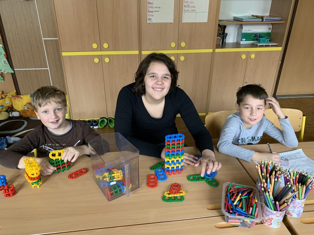 Ve školní družině si žáci nejen hrají a vyrábějí, ale také se učí novým tématům. Tento rok se zaměřujeme na přírodu – jak se mění příroda v průběhu roku, jak se v těchto změnách v přírodě chovají zvířátka, jak se celý rok vlastně dělí, jaké slavíme v průběhu roku svátky. O tématu si vždy žáci povídají, malují ho a vyrábějí tematické výrobky. Ve družině také hrají různé hry, a pokud přeje počasí, běhají i po venku.