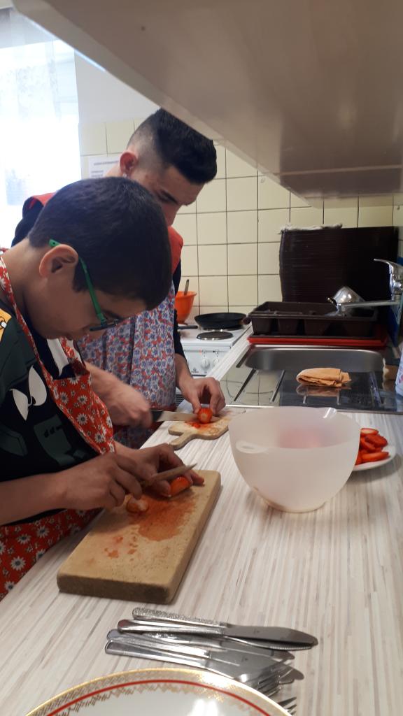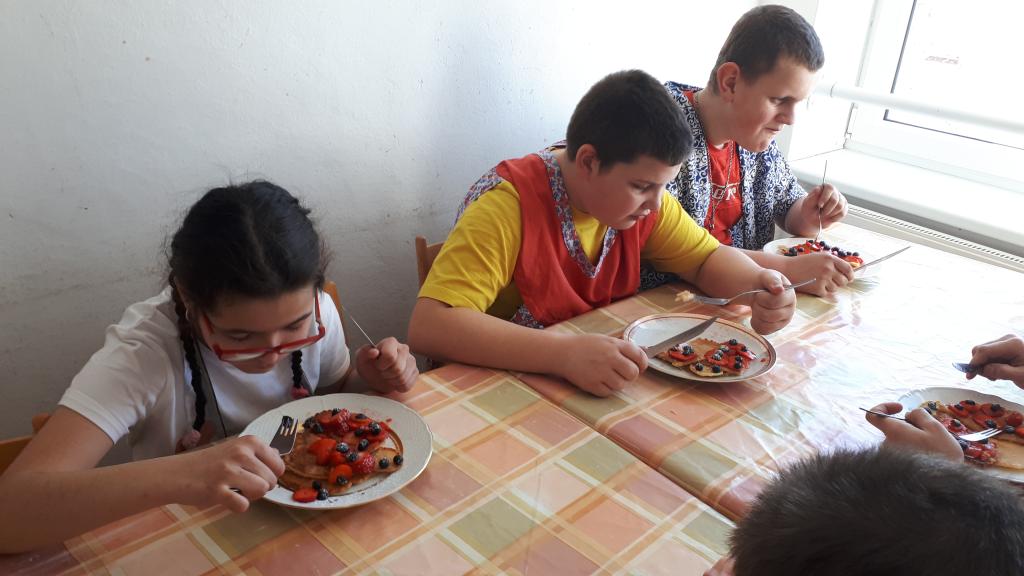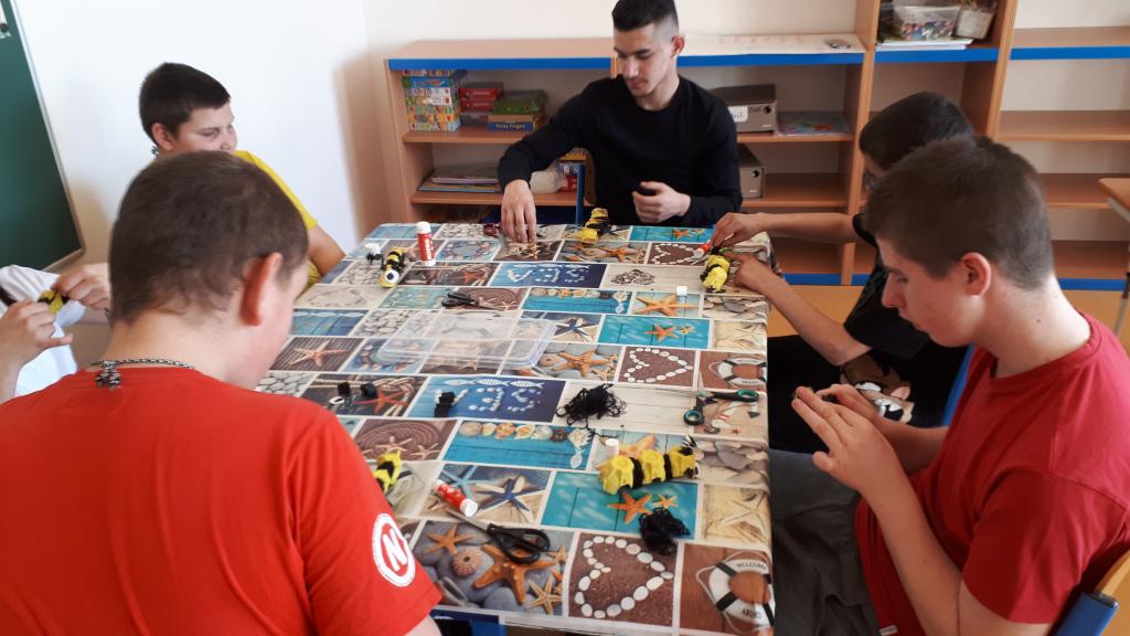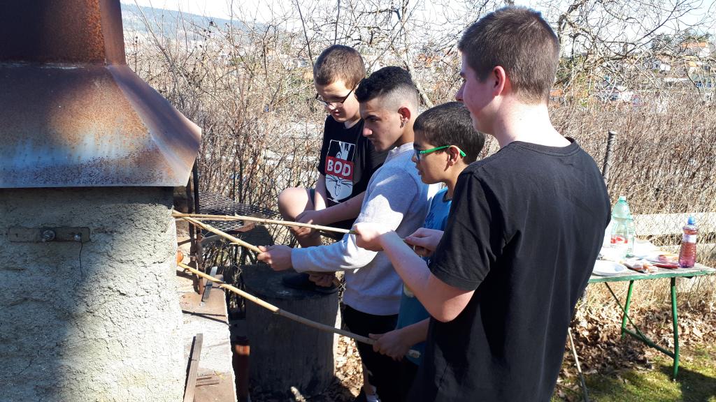 Z plátů vajíček a papíru si vyrobili včelku. V kuchyňce žáci upekli palačinky a ozdobili jahodami a la BERUŠKA. Dále žáci přiřazovali správný název květiny s obrázkem. Druhý den jsme jaro vítali opečením vuřtů a v procházkou do okolí. Žáci hledali první jarní květiny v zahradách a ve volné přírodě.
