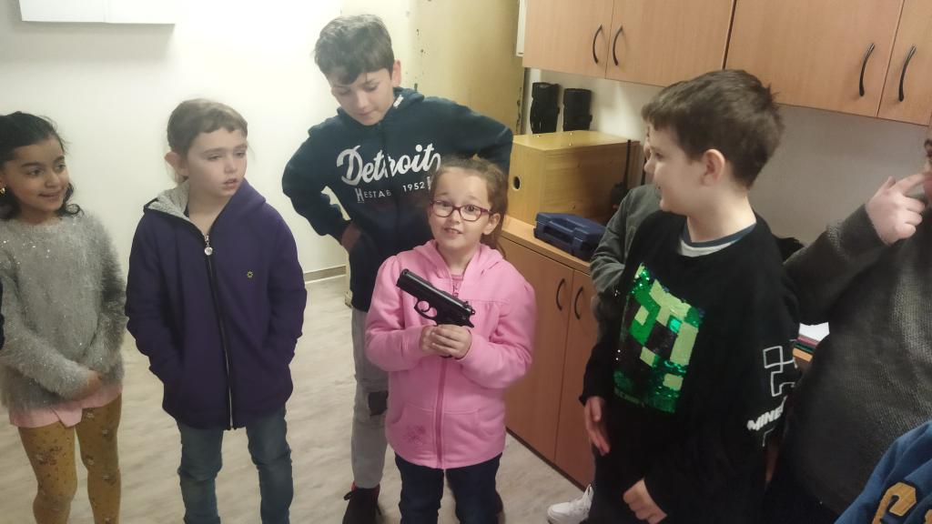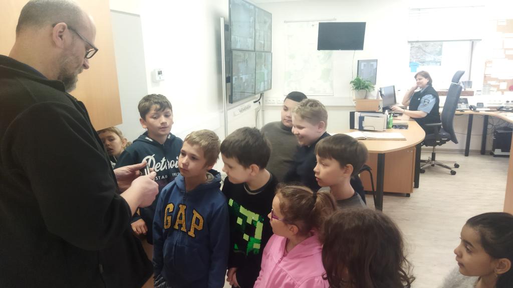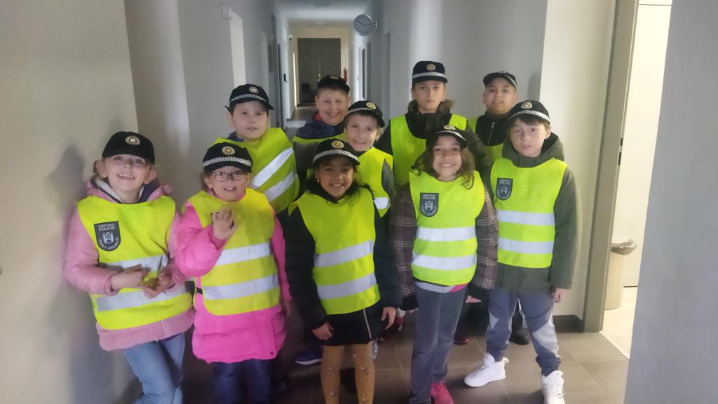 Dne 5. 4. 2022 jsme se poprvé podívali do nové služebny Městské policie v Českém Krumlově. Služebnou nás provedl pan Pípal. Děti si mohly osahat služební zbraň, vyzkoušely si pouta a přes kamerový systém pozorovaly, co se právě děje v našem městě. Venku jsme si prohlédli policejní auto a ve vestách městské policie jsme se vydali hlídat pořádek v ulicích. Největší zábava bylo pokutování aut bez parkovacích lístků. Den jsme si užili a už se těšíme na další návštěvu.