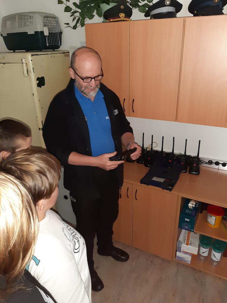V pátek 8.4. se IV. třída vydala na návštěvu služebny městské policie. Děti zjistily, co všechno se na služebně nachází. Viděli jsme kamerový systém, zasedací místnost. Vyzkoušeli jsme si vidění člověka pod vlivem alkoholu a drog. Poté jsme se vydali do města na pochůzku a kontrolovali jsem pořádek v ulicích města.