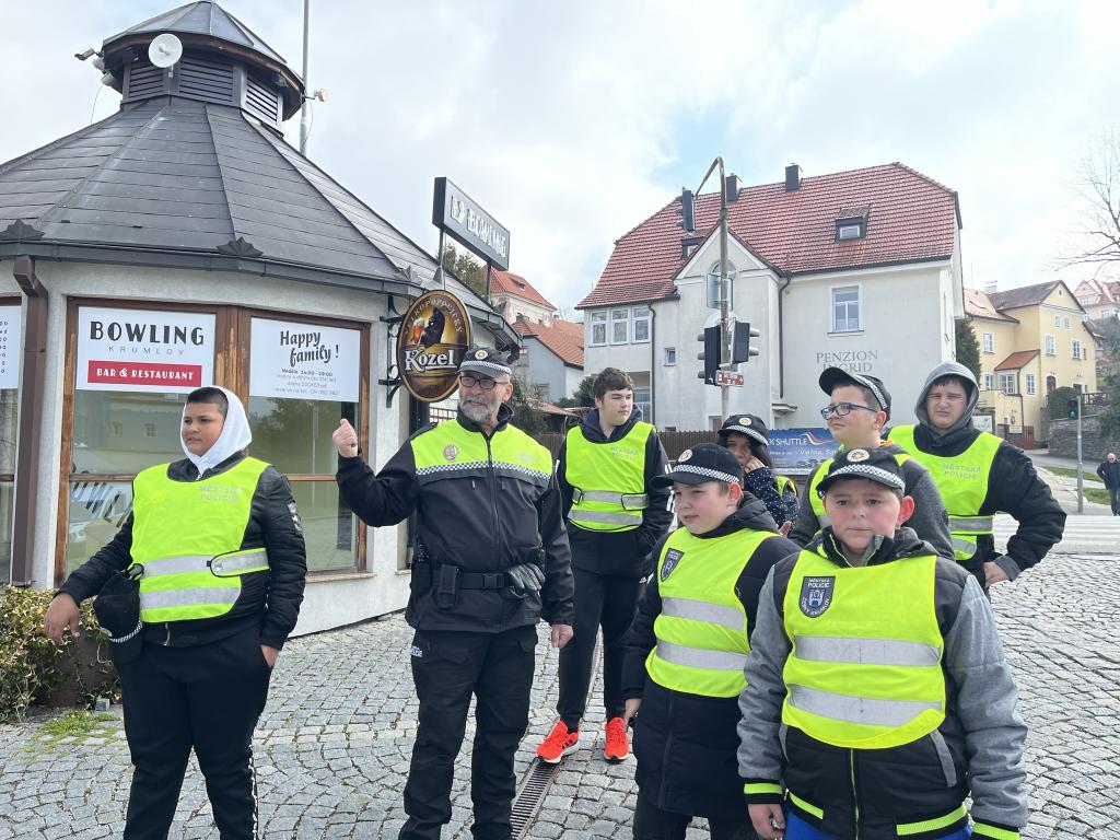 Žáci měli možnost se na služebně Policie ČR v Českém Krumlově seznámit blíže s prací policisty, policejní stanicí a kamerovým systémem. V rámci pochůzky po městě se naučili některé dopravní značky a odhalovali špatně zaparkovaná vozidla. Na závěr návštěvy se na vlastní žádost nechali zamknout za mříže. Den se všem velice líbil.