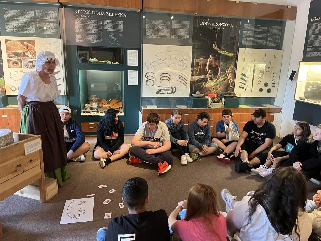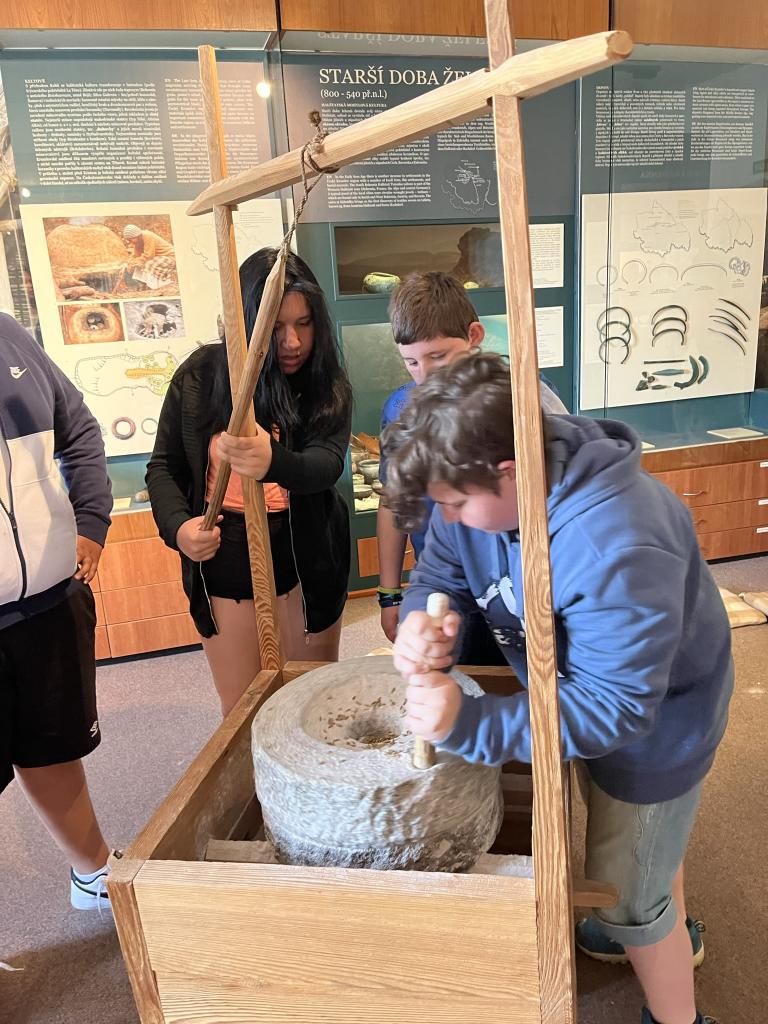 Dne 12. 5. se devátá a šestá třída zúčastnila návštěvy muzea v Českém Krumlově. Konkrétně jsme mohli nahlédnout do zákulisí výstavy s názvem „CECHY A ŘEMESLA“. Žáci mohli shlédnout historický model města Český Krumlov a vyslechnout si zajímavé povídání o řemeslech, které byly v našem městě provozovány v dobách dávno minulých. Dále jsme si otestovali jednotlivé druhy obilí, zkusili utlouct mouku na historických nástrojích. A v neposlední řadě jsme se naučili vyrábět provaz. Návštěva pro nás byla velmi zajímavá a obohacující.