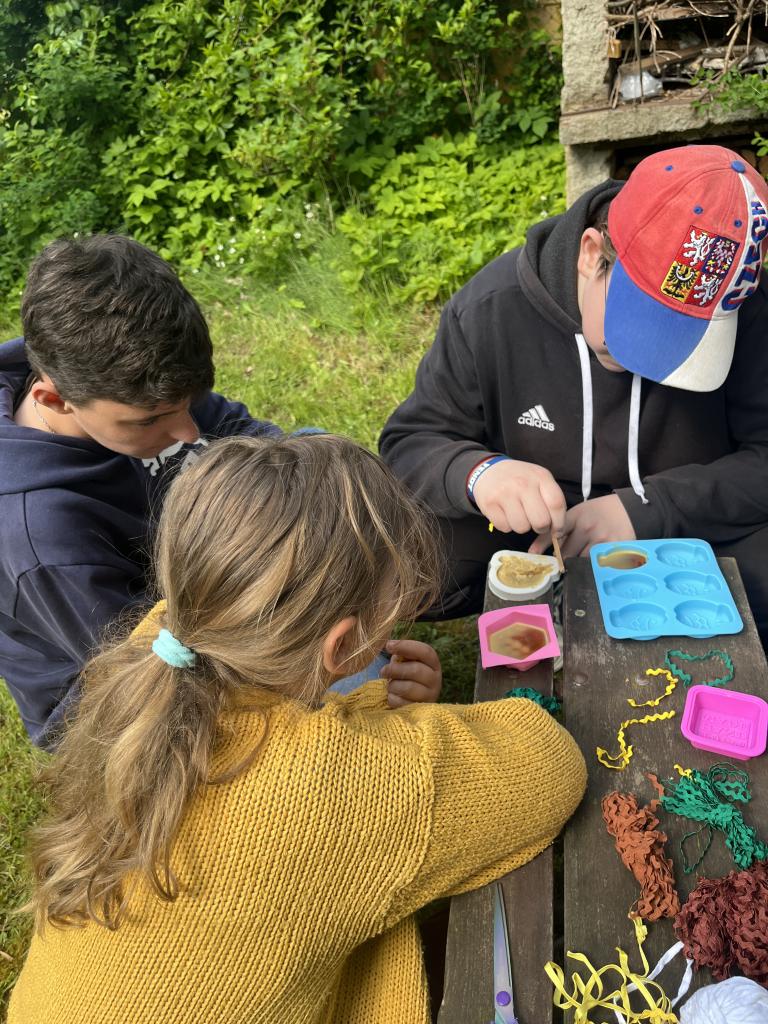 V pondělí 19.5.2025 jsme oslavili světový den včel. O včelách jsme se hodně dozvěděli, vyzkoušeli jsme, co vše používá včelař, pracovali jsme s voskem, vymodelovali jsme pítko pro včely, ochutnali si chleba s medem a máslem a v kvízu jsme zjistili, že včela je nejužitečnější tvor. Na závěr jsme na dvoře nasbírali kytky k jídlu a udělali si salát, který si děti ochutnaly v jídelně.