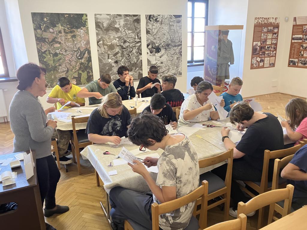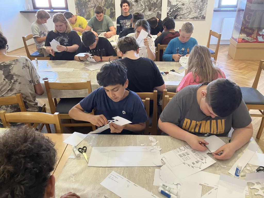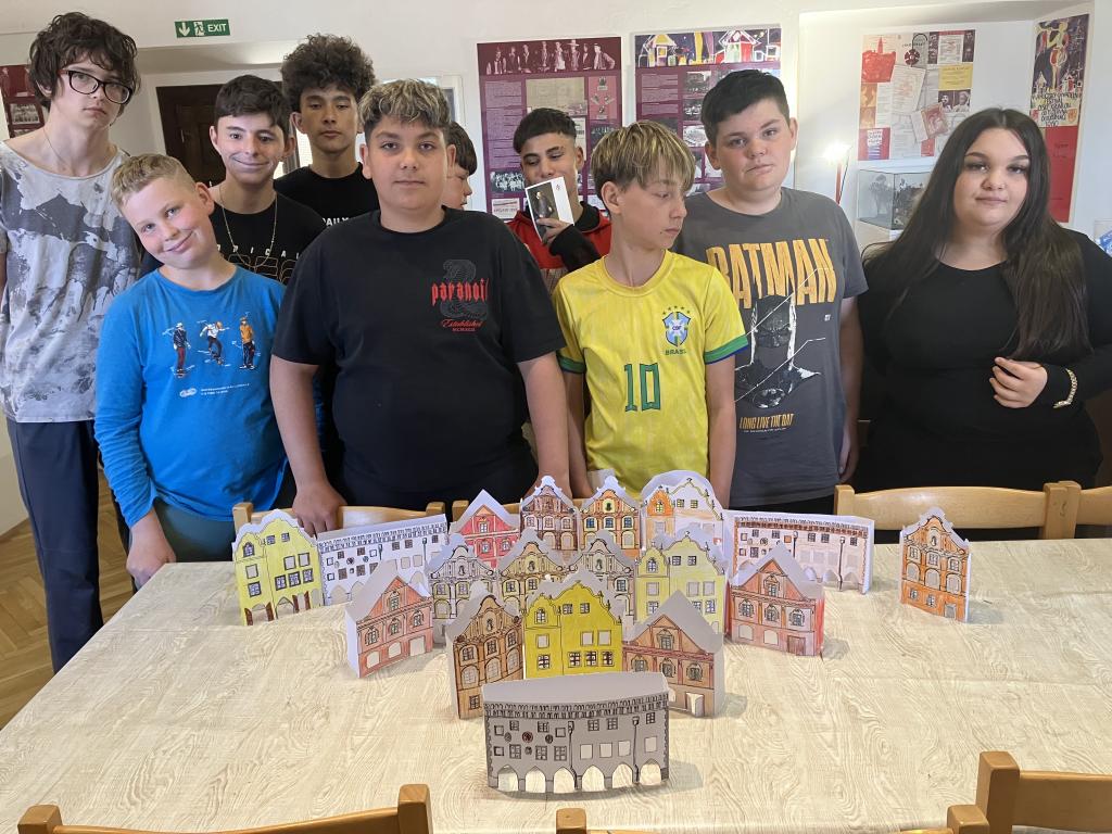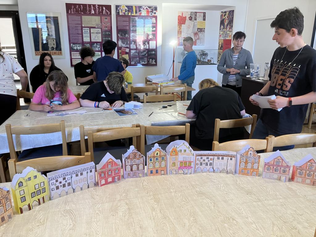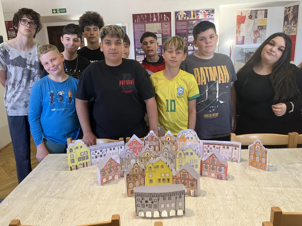 V muzeu pro naše žáky paní Caisová připravila program Domky, domečky. Dozvěděli jsme se mnoho zajímavostí o krumlovských domech a jejich historii. Prohlédli jsme si keramický model starobylého města a sami si vytvořili papírové modely starých domů z centra města.