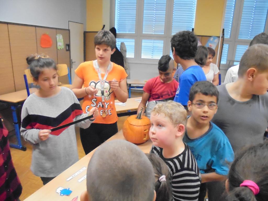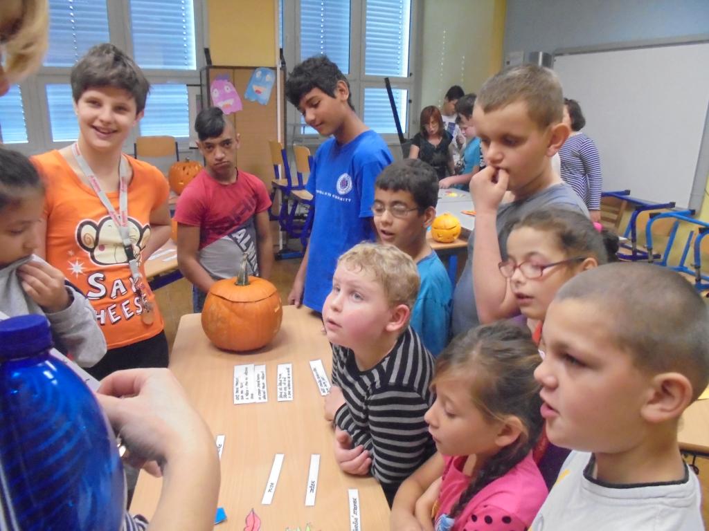 Sedmáci připravili pro naše nejmenší žákyňky a žáčky strašidelnou a zábavnou procházku mezi ozdobenými dýněmi. Měli pro své spolužáky nachystány hry, kvízy i soutěže.