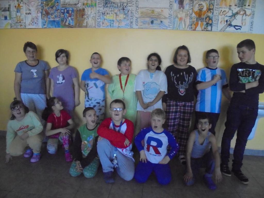 Děti ze školní družiny prožily školní den v pyžamech. Vtipnou a veselou akci plnou her a zábavy pro všechny vymyslela a uspořádala jejich paní vychovatelka. Kdo z nás si vyzkoušel učit se v pyžámku?