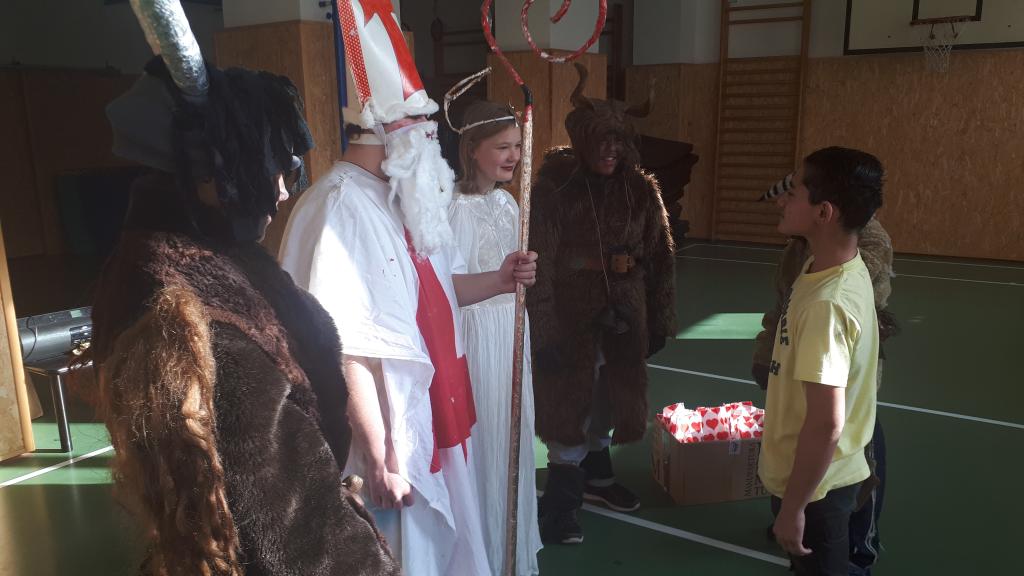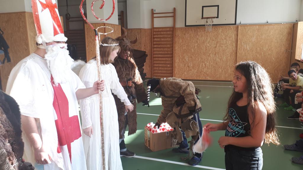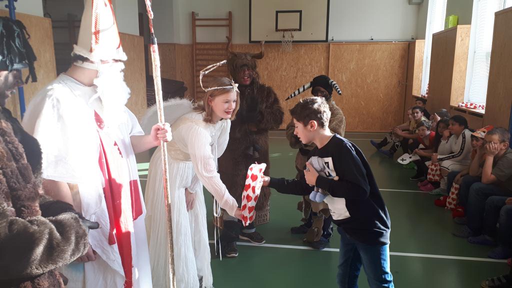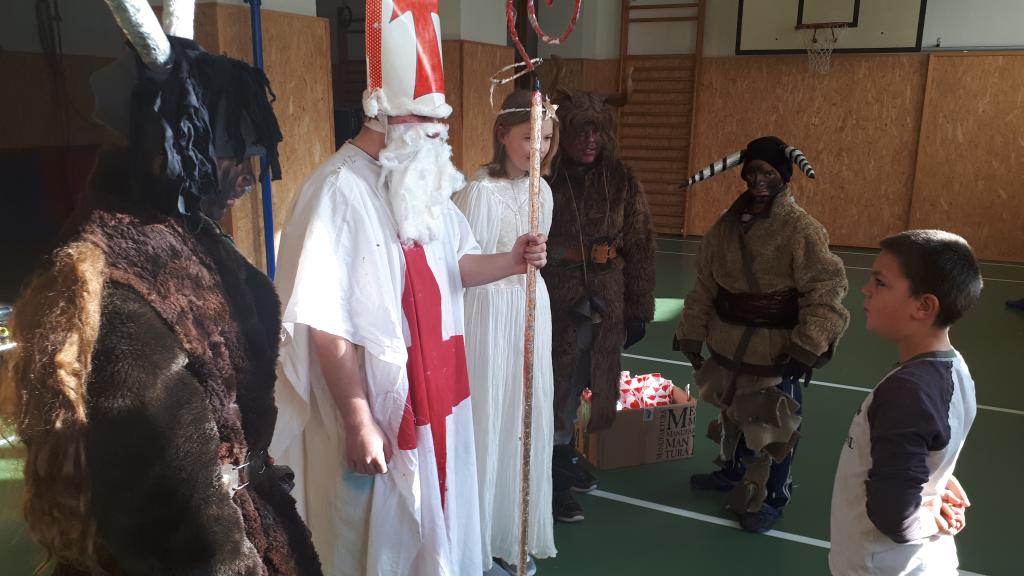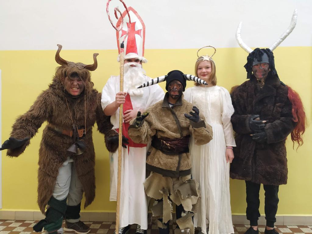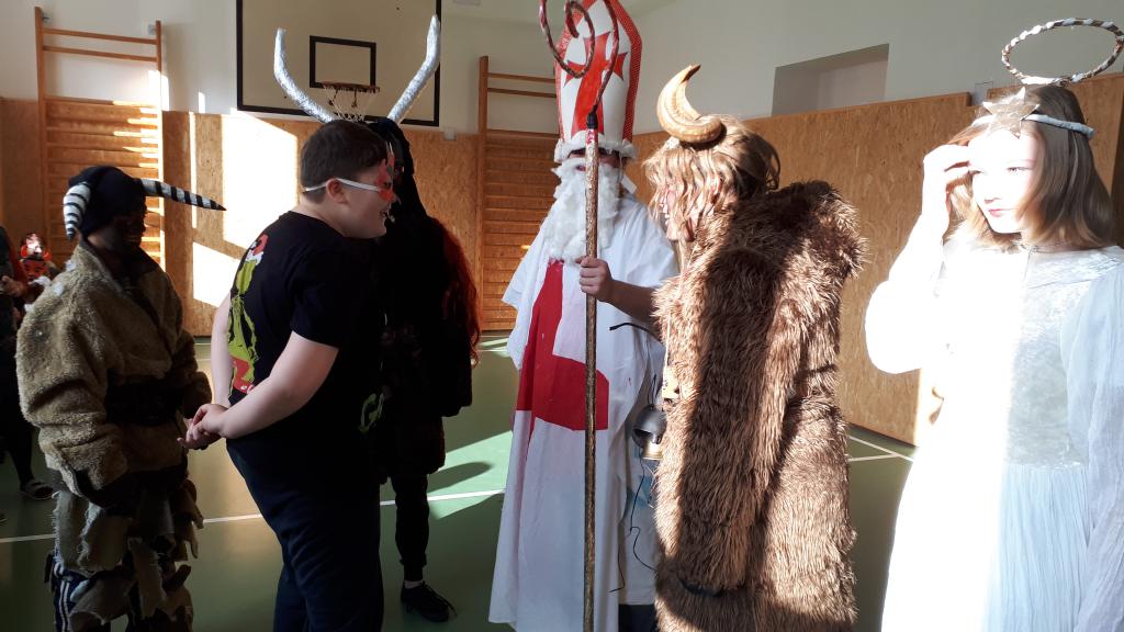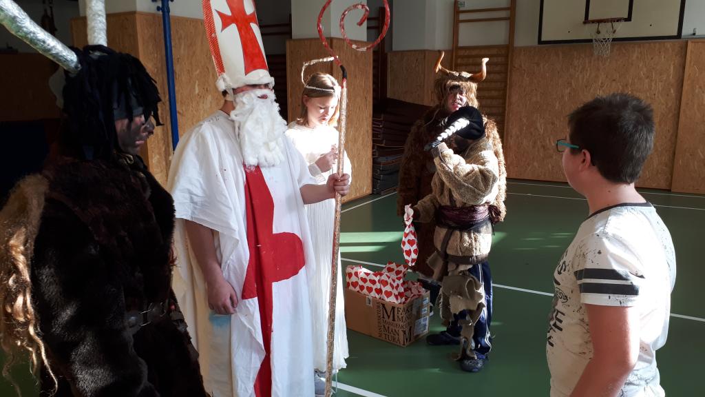 Do školy za námi přišel Mikuláš s čerty a s andělem. A naštěstí nikoho neodnesli do pekla, ale všechny odměnili pěkným balíčkem...