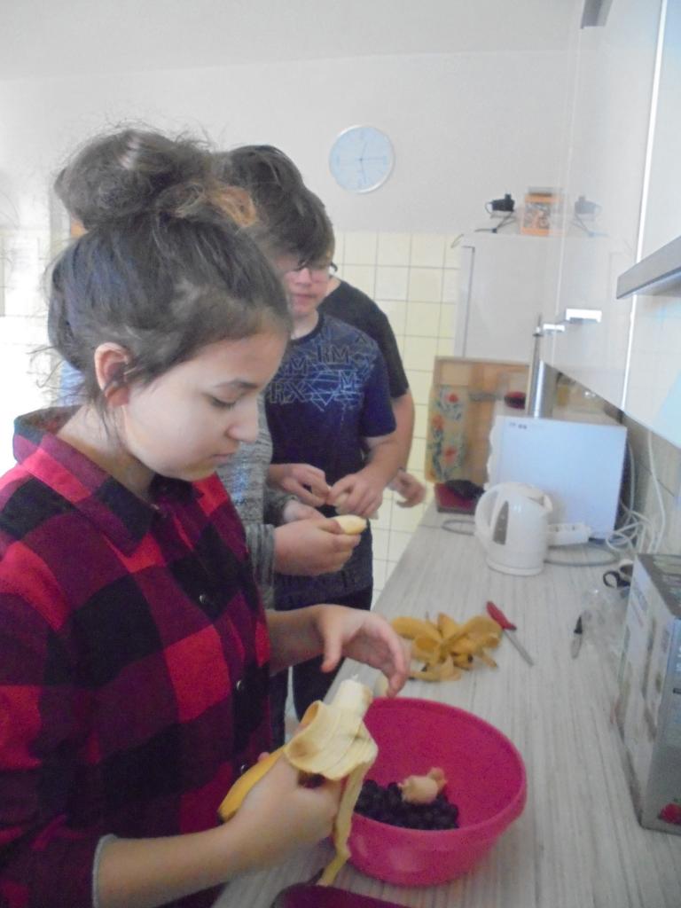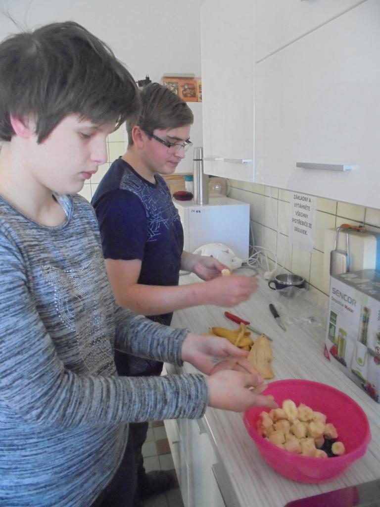 Celá škola se zúčastnila projektu Zdravé 5. I.A, VI.S, III. a IV. třída nakupovaly - pomocí zajímavých pomůcek se učily orientovat v nabídce potrvin. VII. a VIII. třída vařily - připravovaly lahodné smoothie, zdravou kaši a salát.