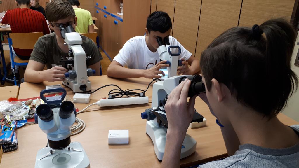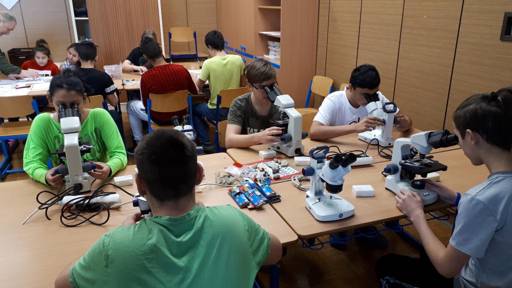 Laboratoř na kolečkách si tentokrát užívali žáci 2. stupně. Pracovali nejen s mikroskopy, ale i s ozoboty a mnoha zajímavými materiály. Téma bylo Oheň, vzduch...
