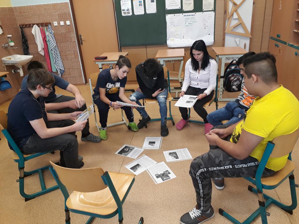 Osmáci pracují na projektu o osudech českokrumlovské rodačky Ruth Adlerové-Hálové - sledujeme její dětství v našem městě, odkud byla nucena se svou rodinou odejít na počátku 2. světové války. Připravujeme cestu městem po jejích stopách (z jejích vzpomínek a vyprávění), zkoušíme si vyrobit židovské žluté hvězdy, studujeme zajímavé dokumenty...