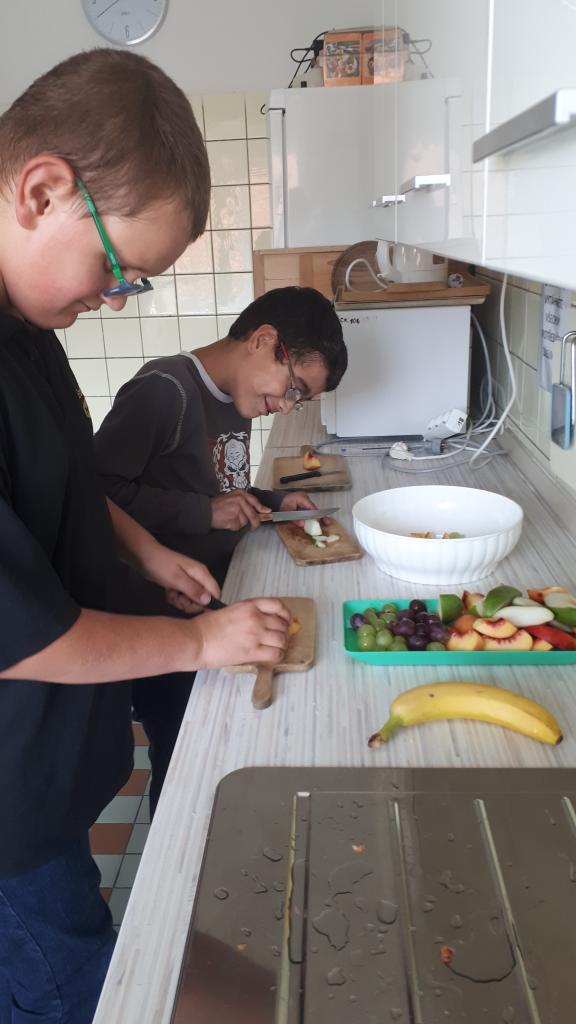Žáci a žákyně ze třídy VII.S si povídali o zdravém životním stylu a hygieně těla. Na hřišti si zacvičili a ve školní kuchyňce si připravili zdravé pomazánky a zeleninový a ovocný salát.