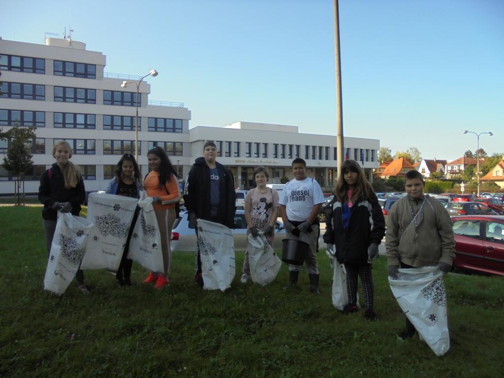 Pracovali jsme pilně a povedlo se nám uklidit okolí školy a městského úřadu, okolí sportovišť a rybníka na Horní bráně a také přístupové cesty a samotný Křížový vrch a rozcestí s částí lesa u Kosťárny.