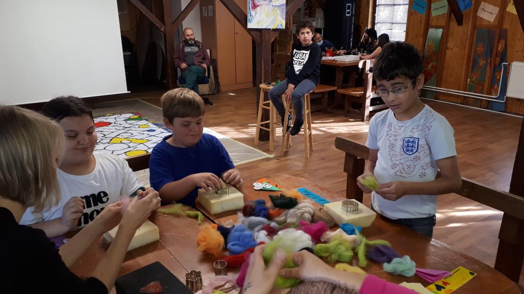 Žáci a žákyně naší školy se zúčastnili projektu Výtvarný podzim v Boudě (NZDM Bouda ČK). Měli možnost si vyzkoušet 5 výtvatných technik, například plstění z ovčí vlny, výroba odznáčků, velkoformátová malba...