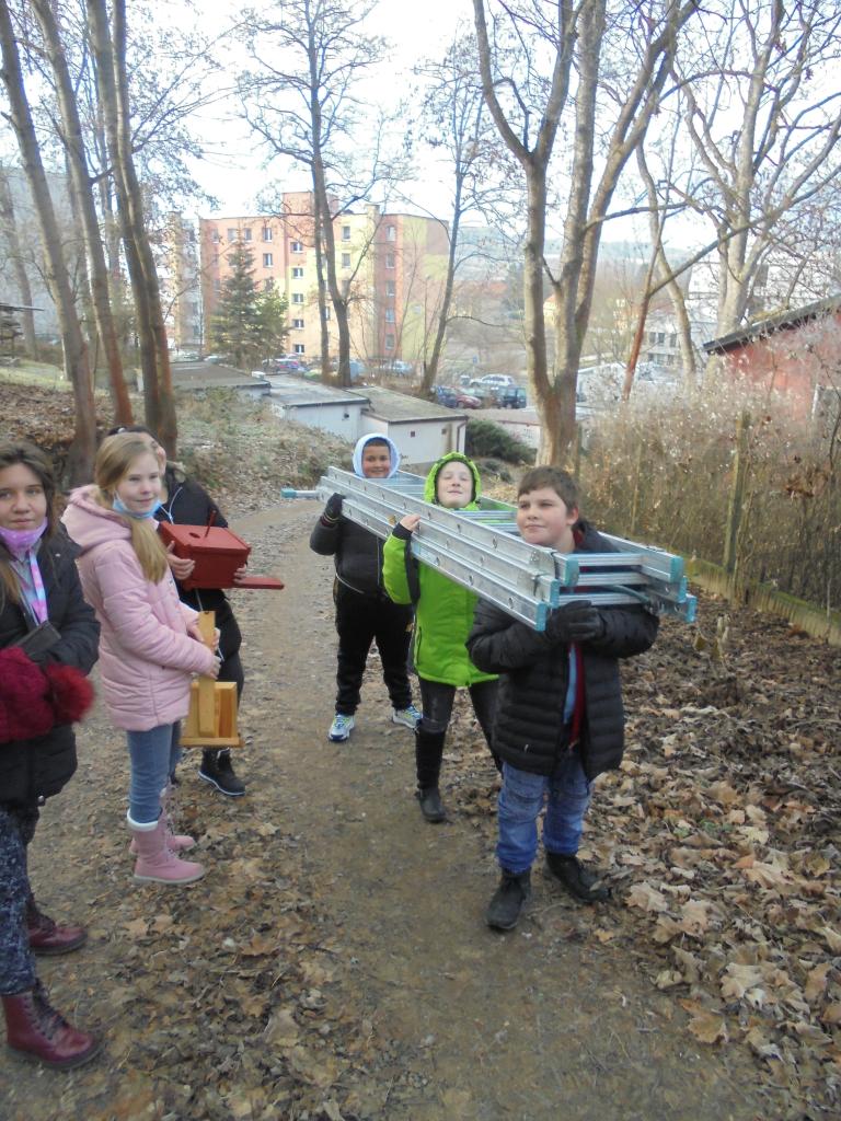Projektový den byl zaměřený na rozmístění ptačích budek na školní zahradě a blízkém Křížovém vrchu. Žáci se seznámili se životem ptáků hnízdících v budkách. Naučili se zásady při výrobě budek a práci se dřevem. A při procházce si všímali zajímavostí ze zimní přírody.