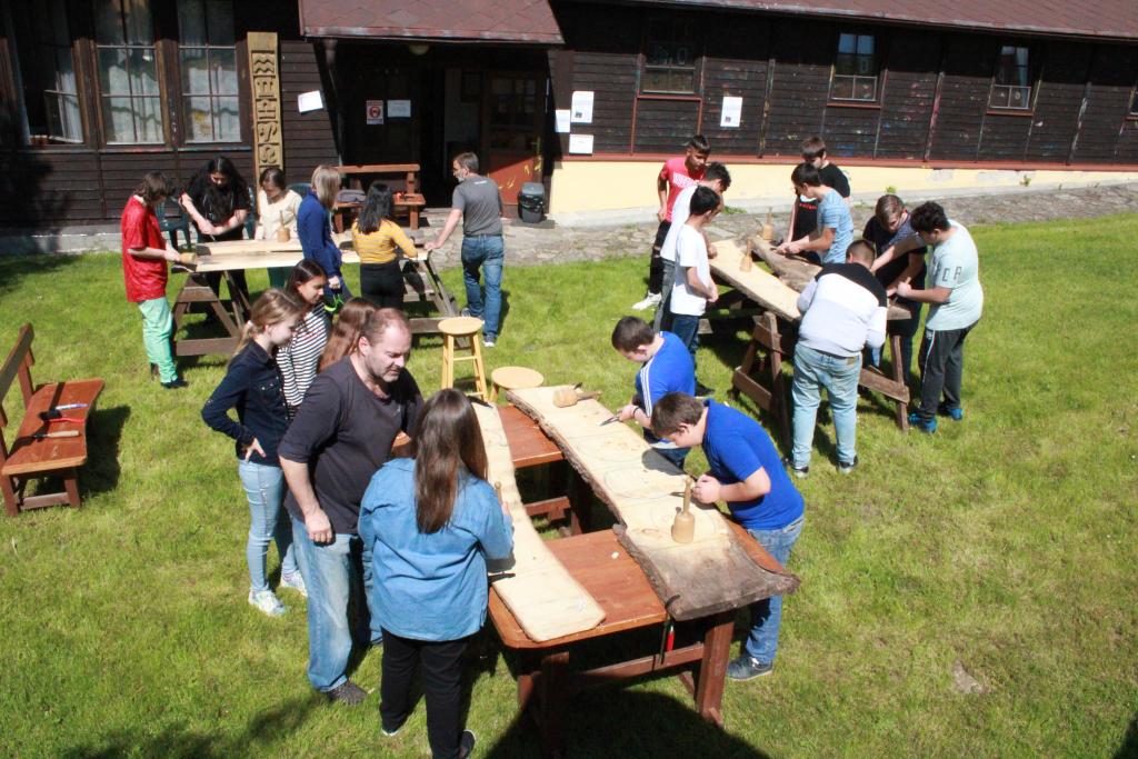 Opět jsme se zúčastnili akce v Boudě v ČK - zkusili jsme si práci řezbářů. Pracovali jsme na vyřezávání a rytí ornamentů a obrázků do dřeva.
