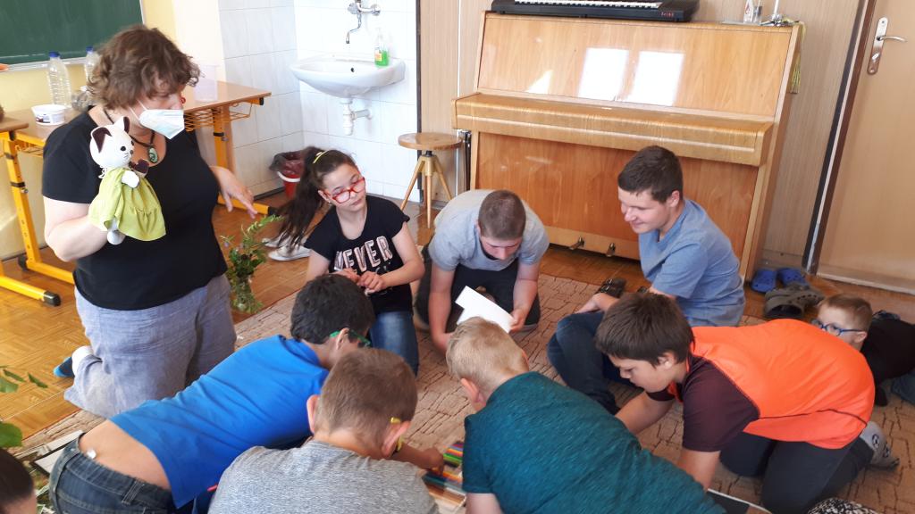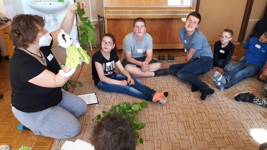 V další části si děti vyzkoušely poznávačku stromů podle listů, jehličí a kůry. Cílem praktické části