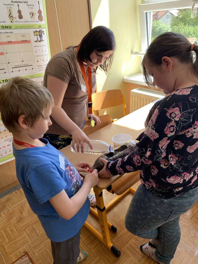workshopu bylo ukázat dětem rozdíl mezi tím, jak propouští vodu mech, kamení či hlína.