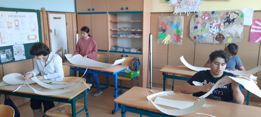 Dne 1.6. měla VIII. třída projektový den s názvem „Umělci“. Věnovali jsme se různým druhům umělecké činnosti. Ať již výtvarnému umění, literárnímu, ale především hudebnímu. Seznámili jsme se s životem a dílem slavného krumlovského hudebního skladatele a muzikanta Petra Ebena. Poslechli jsme si ukázky z jeho díla; především ty, které byly určeny hlavně dětem. Poté jsme vyráběli rekvizity na naše hudebně – taneční vystoupení na školní zahradní slavnost. Závěrem jsme si vyzkoušeli i umění cukrářské. Celý den jsme si jaksepatří užili a přitom jsme se i mnohé dozvěděli.