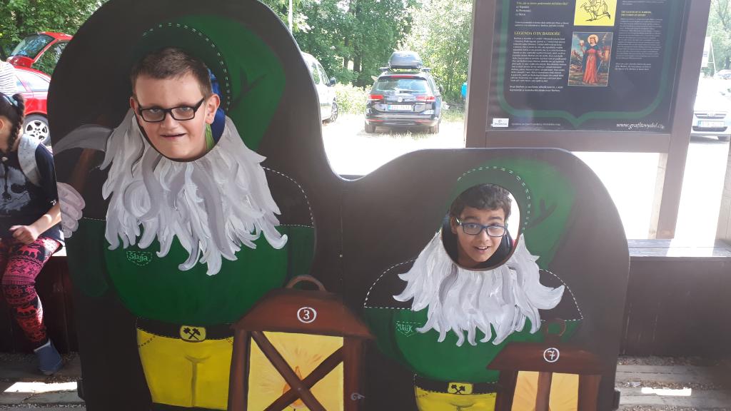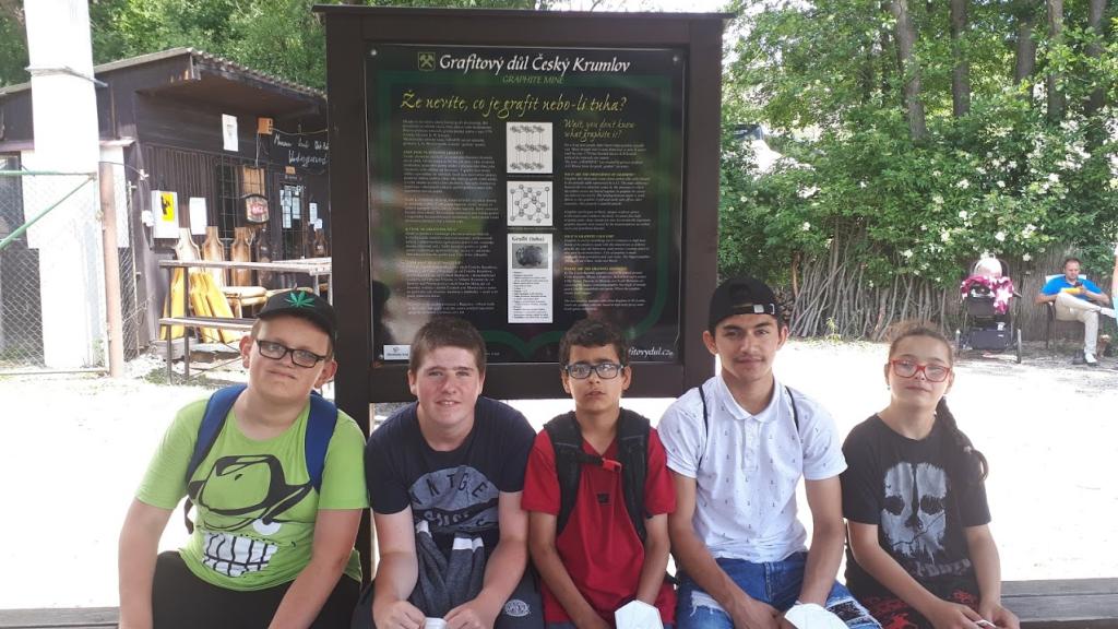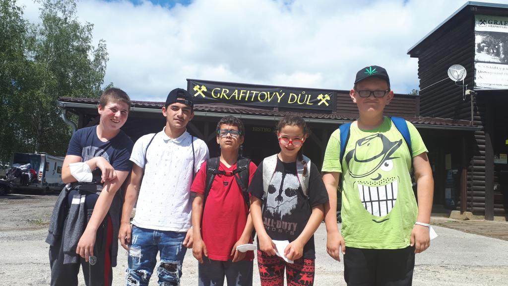 Ve čtvrtek 24.6.2021 jsme se s odvahou vydali do Grafitového dolu. Nejdříve nás pracovníci dolu oblékli do nepromokavých plášťů, přileb a gumáků. Po krátkém poučení jsme nasedli do železného vláčku, který nás odvezl hluboko do podzemí. K. se trochu bála, ale když zjistila, že je v bezpečí, měla radost z jízdy. Pan průvodce nám velmi hezky povídal o historii dolu a jak se v dole pracovalo. Zpět jsme šli po svých. Byl to pro nás nádherný zážitek. Nikdy před tím jsme nic takového nezažili.