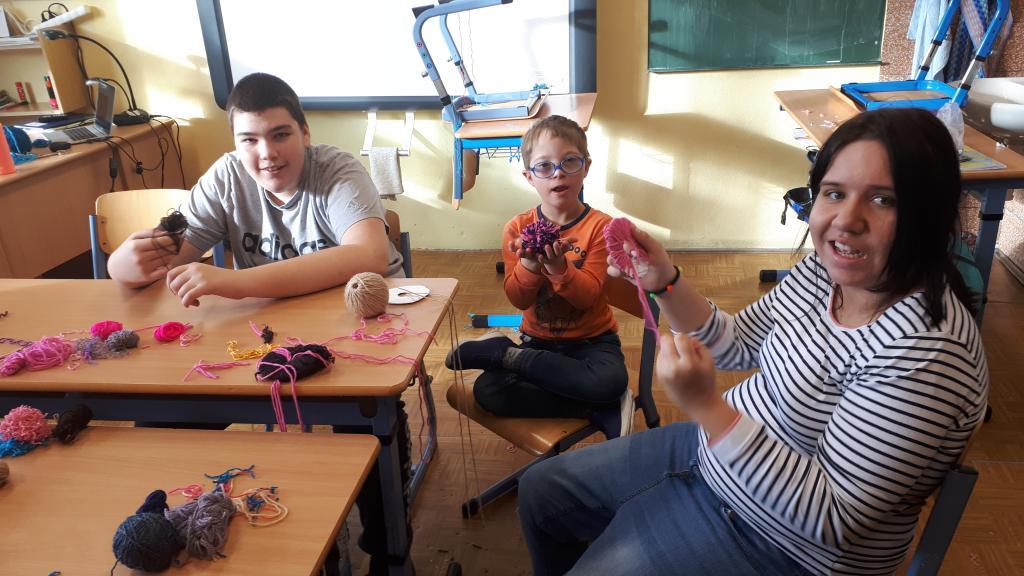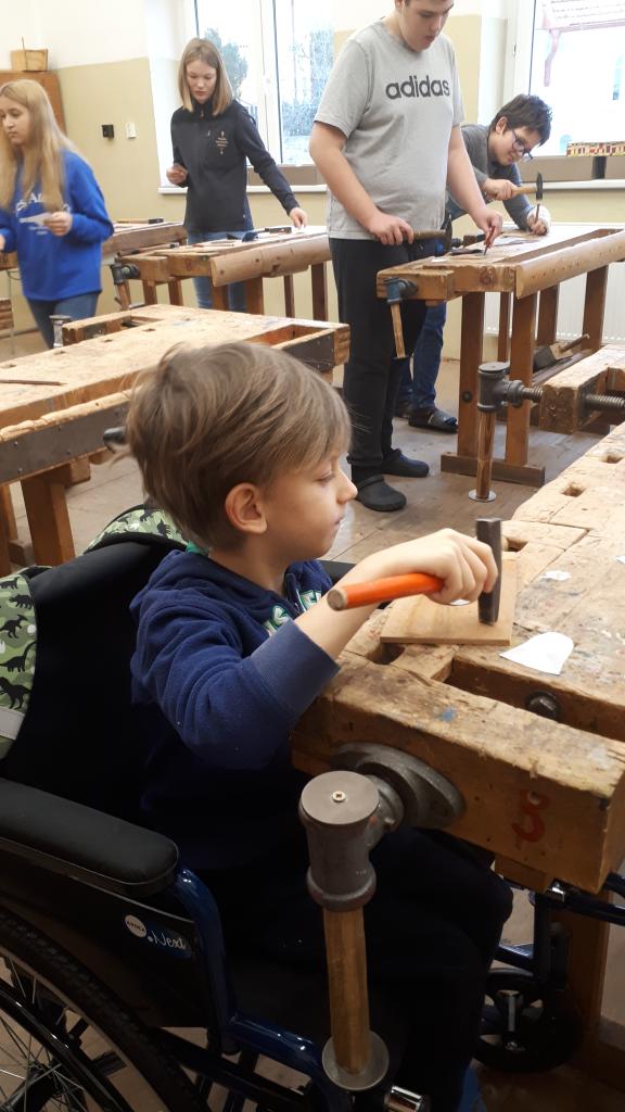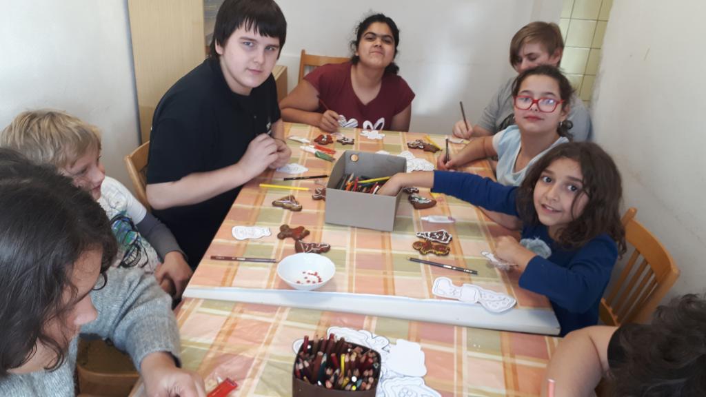 Žáci si pomocí tepacího nářadí a kusů plechu vytvořili ozdoby na stromeček. Na připravené perníčky si žáci bílkovou polevou malovali ornamenty. K tomu si ještě vymalovali papírové perníčky. Z připravených vláken vln si žáci technikou omotávaní kolem papírového kruhu vytvořili kouli jako ozdobu na stromek. Koule jsou jedno nebo vícebarevné. Pomocí techniky výroby ručního papíru si žáci vyrobili jmenovky na dárky. Všechny dílny byly krásně připraveny. Žáci tvořili se zaujetím a z každé dílny si domů odnesou hotové výrobky. Dílničky provázela vánoční nálada s hudbou.