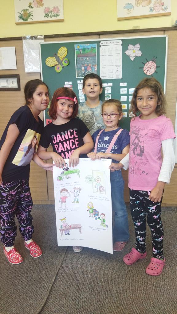 Ve čtvrtek 15.9. jsme strávili den vzájemným poznáváním a učením se spolupráce. Nejprve jsme si zahráli seznamovací hry a každý potom nakreslil obrázek sám sebe. Potom jsme si povídali o pravidlech, která je potřeba dodržovat, aby nám bylo ve třídě spolu dobře. Vyrobili jsme si společně třídní dohodu, podle které se budeme řídit. Nakonec jsme vyrazili do městského parku a postavili jsme nádherný domeček pro skřítky. Na domečku jsme si vyzkoušeli pravidla spolupráce. Celý den se nám moc líbil a už se těšíme na další projektový den.