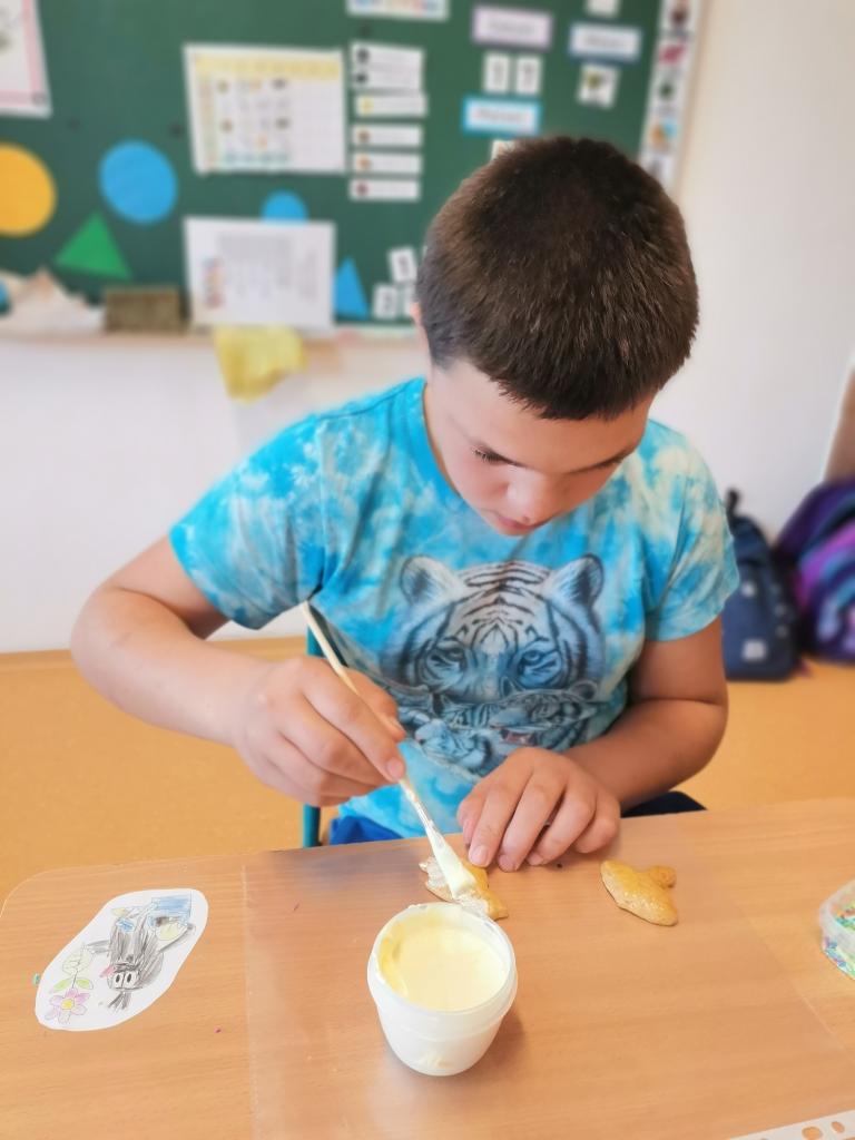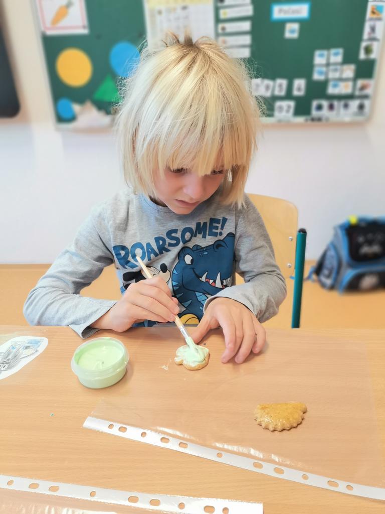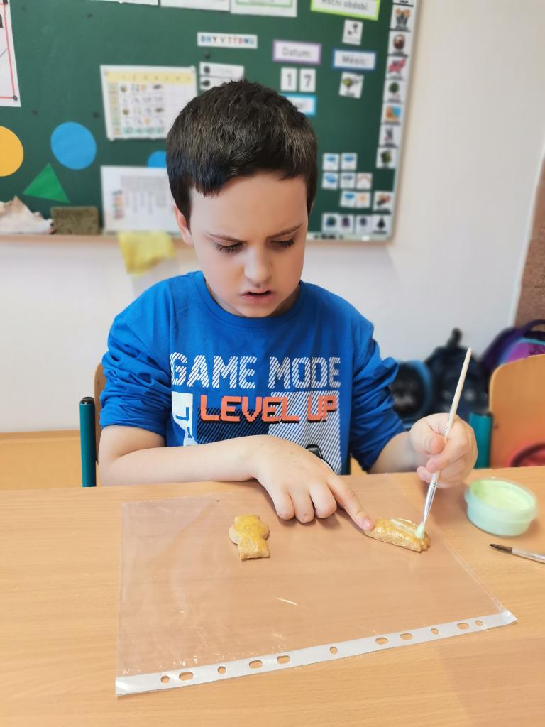 Dne 17. 10. měly třídy I. S, II. S, IV. A projektový den s názvem „Podzimní tvoření.“ Den začal vyprávěním o podzimu. O tom, jak vypadá příroda, co se dělá na zahradě, na poli. Potom se žáci rozdělili do skupin, ve kterých vyráběli z papíru a z různých přírodních materiálů veverky, myšky a svícínky. A co by to bylo za projektový den bez něčeho dobrého na zub. Zdobili tedy barevnými polevami voňavé perníčky, na kterých si potom pochutnali. Celý projektový den byl prokládán písničkami a tanečky na výše uvedené téma – podzim, ovoce, zelenina, zahradník, zvířátka apod. Domů odcházeli všichni spokojeni, a dokonce s nazdobenými perníčky pro maminky a tatínky.