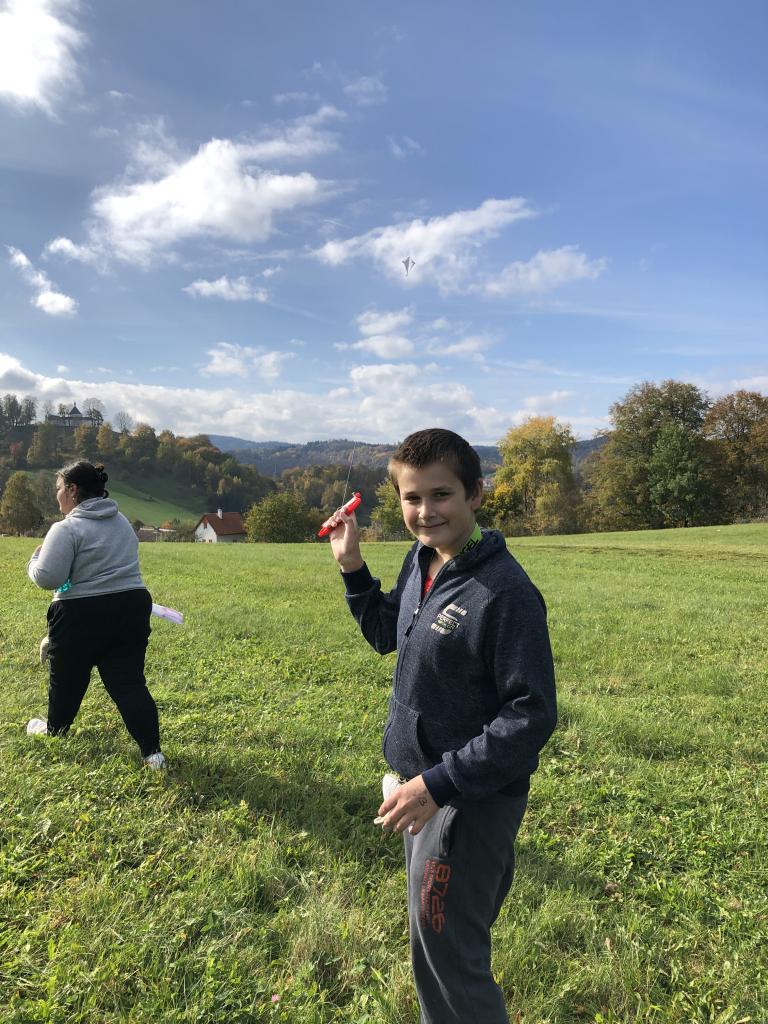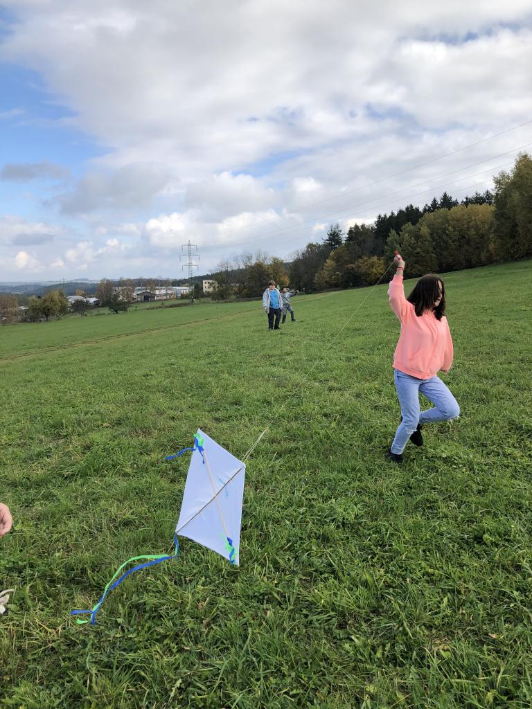 Ráno žáci tvořili v muzeu – šitou myšku vyplnili a zašili. Ve škole jsme pokračovali povídáním o podzimu. Hráli jsme zakódovanou hru. Pomocí Google překladače žáci překládali anglická slovíčka o podzimu a doplňovali do tajenek. Nakonec jsme si šli na Křížovou horu pouštět draky.