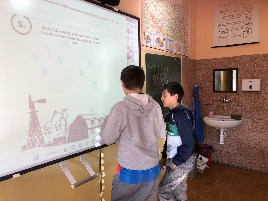 Na začátku projektového dne jsme si přečetli legendu o svatém Martinovi. Na základě obsahu jsme zahájili BOJOVKU, při které měla jednotlivá družstva plnit úkoly pomocí her, otázek a odpovědí, prací s interaktivním materiálem. Žáci použili hrací karty pro robota Blue Bot ke hledání správné odpovědi. Párovali matematické úlohy s výsledkem. Na konci dne, žáci vytvořili myšlenkovou mapu spojenou se svátkem svatého Martina.