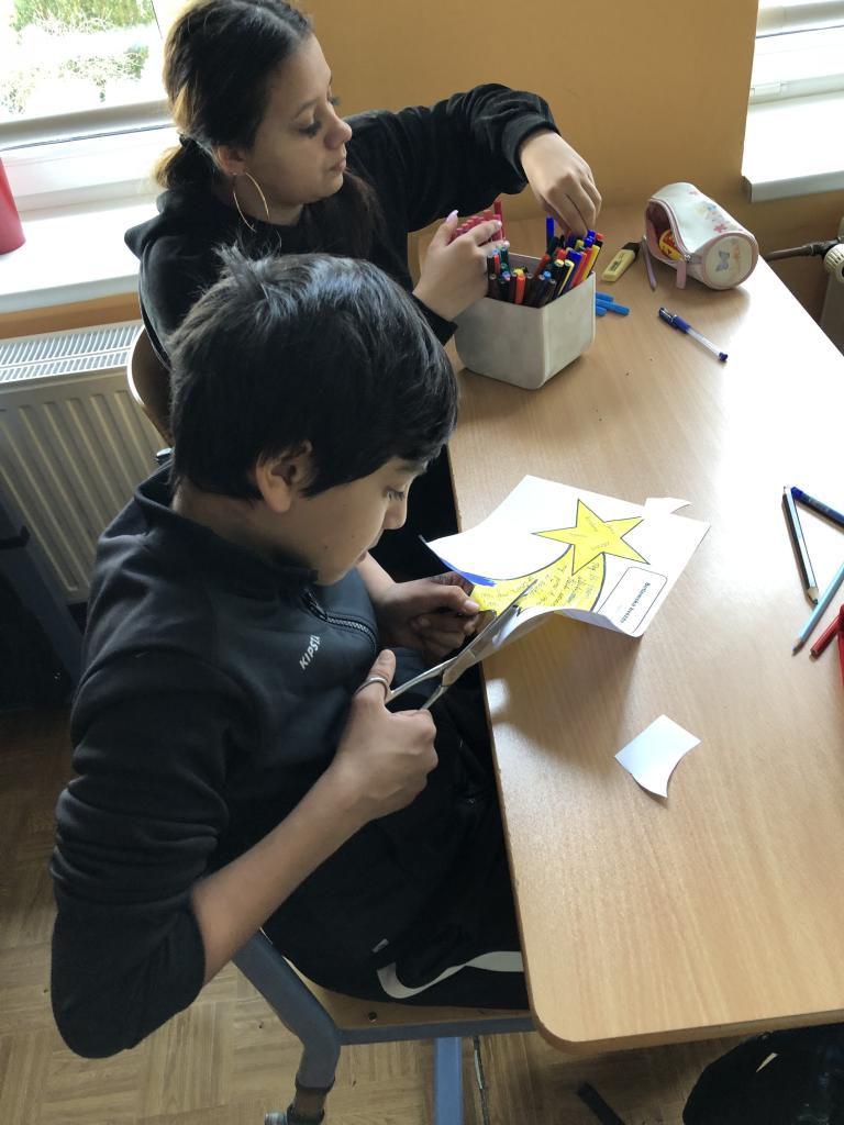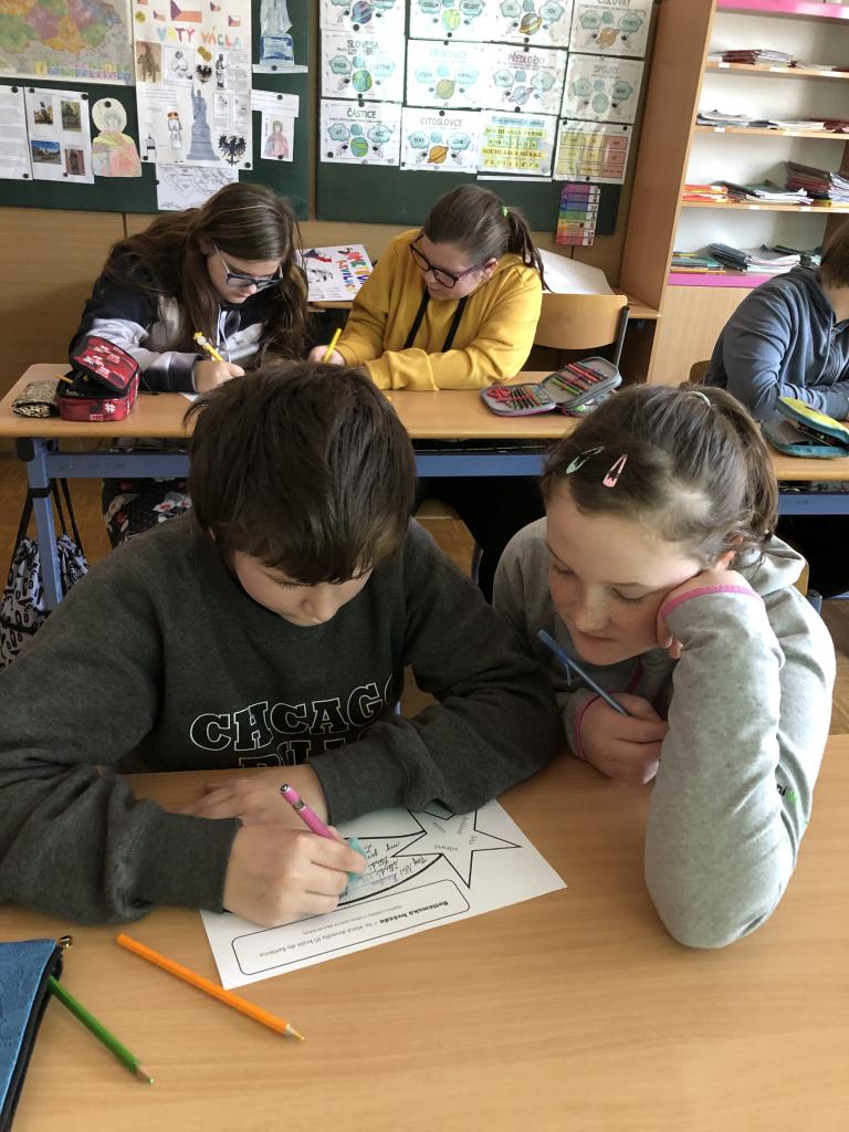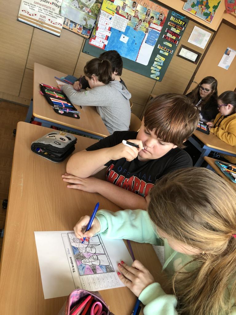 Na začátku dne jsme si povídali o tradicích a zvycích na tři krále. Vytvořili jsme tabulku v prostředí Excelu, kde si žáci zvolili jména skupin. Dále se žáci rozdělili do dvojic a 1. úkolem byla omalovánka s násobilkou. Další tvořící úkol se týkal označování souhlásek-krátké a dlouhé, měkké a tvrdé, dvojhlásky. Další úkol byl opět z ČJ a týkal se doplňování i,í/y,ý do lupenů a lepení ke správné hvězdě.