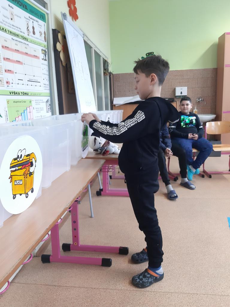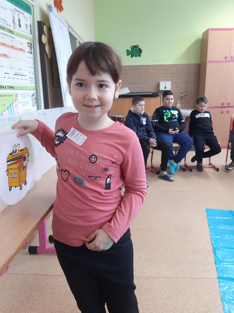 Dne 31.1. se II. a III. třída zúčastnila akce „Co kam patří“. Děti si vyzkoušely, jak třídit odpad. Dozvěděly se o nových kontejnerech na kov a elektro. Učily se barvy jednotlivých popelnic a na závěr si zazpívaly písničku o třídění odpadu. Všem se nám akce moc líbila. Děkujeme skvělé Ivě Sonnenbergerové.