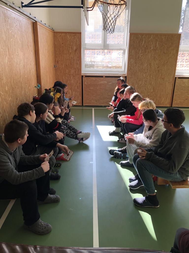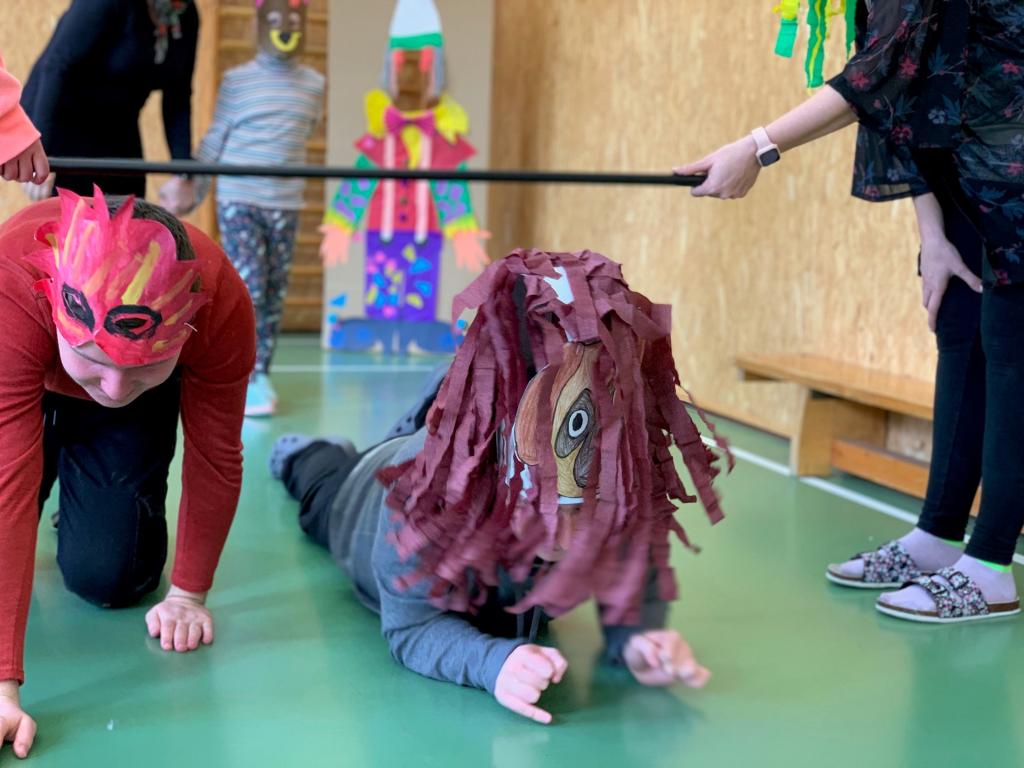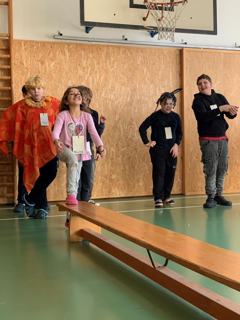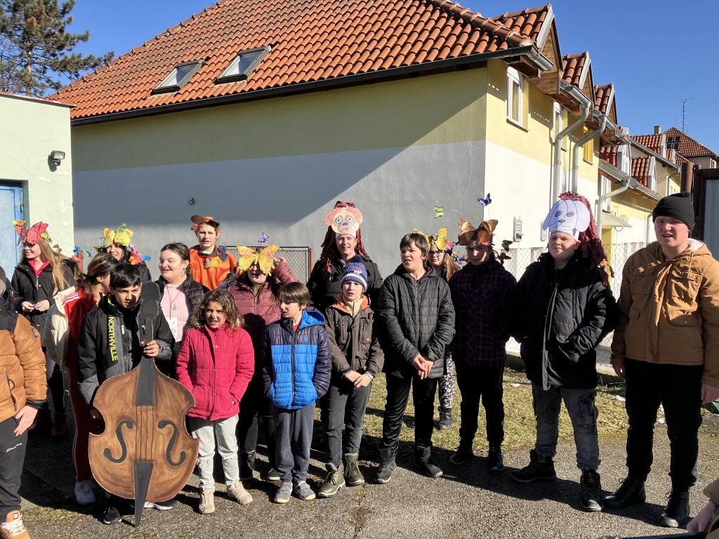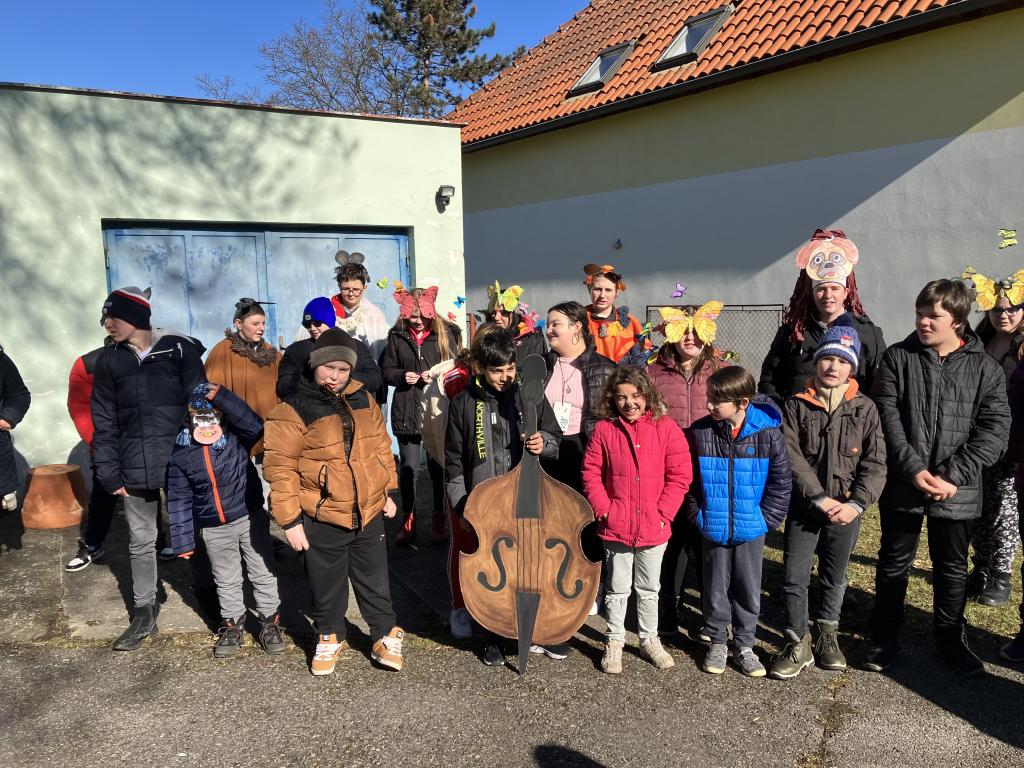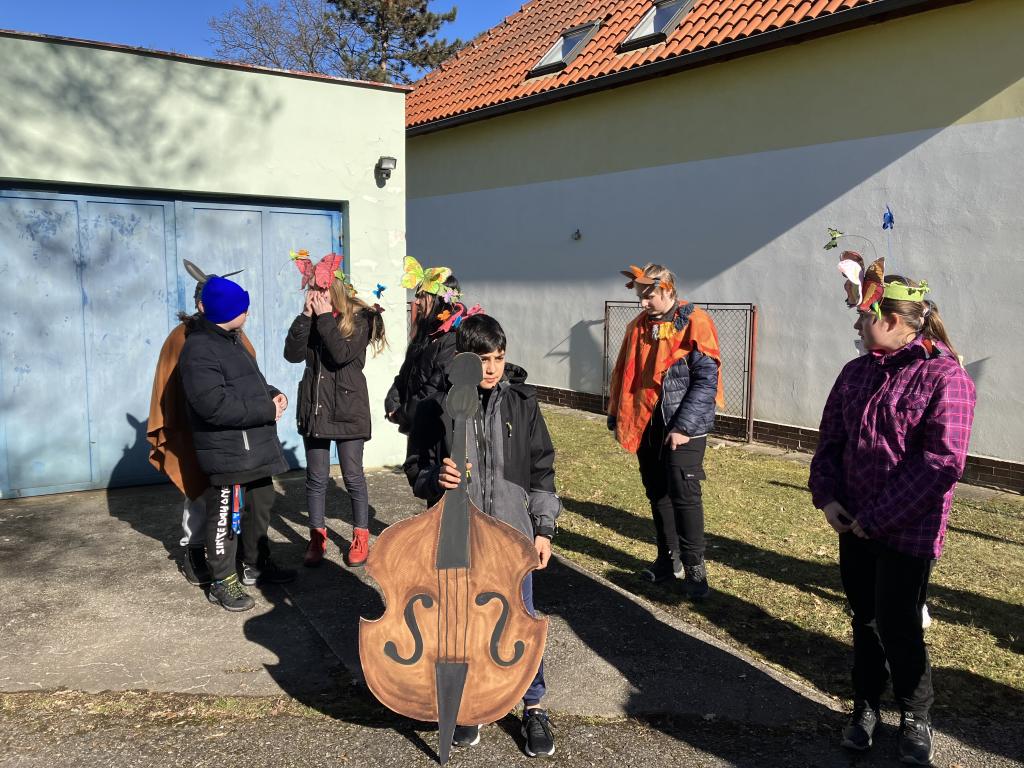 Během projektového dne Masopust jsme si užili opravdové masopustní veselí maškar a masek. Zahráli jsme si spoustu her a soutěží, třeba jsme lovili jelita, skákali s balónky, poznávali čichové a chuťové hádanky, tančili a mnoho a mnoho jiného. A na závěr jsme s písničkami vynesli basu.