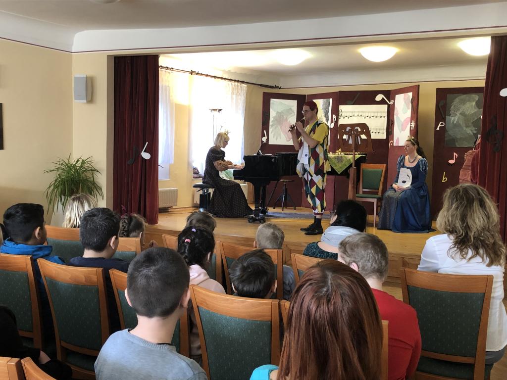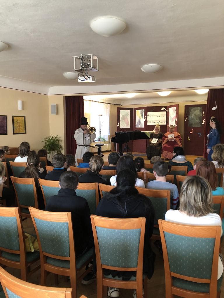 Zúčastnili jsme se opravdového koncertu vážné hudby v sále ZUŠ ČK. Hrály nám dechové nástroje a viděli jsme i krásnou hudební pohádku.