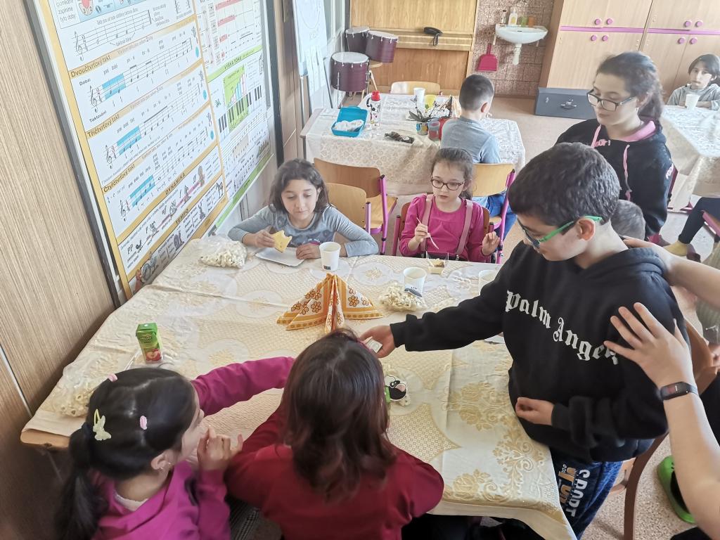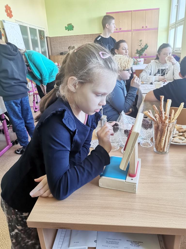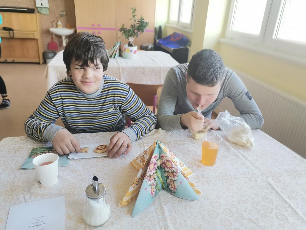Jeden krásný březnový čtvrtek jsme se celá škola vystřídala v naší připravené kavárně / čajovně. Pokrmy a nápoje připravili někteří žáci naší školy. Příjemně jsme si poseděli u pití a sladkých a slaných dobrot. Nejen že jsme spolu strávili čas a mohli se naučit správnému stolování, ale také jsme se učili manipulovat s penězi. Třída IX.S si zkusila, jaké je to být číšníky a šlo jim to krásně od ruky.