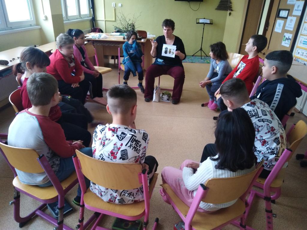 V pondělí 27.3. k nám opět zavítala Iva Sonnenbergrová. II. a III. třídě během dvouhodinového workshopu přiblížila lesní ekosystém. Povídali jsme si o tom, co všechno lze spatřit v lese, jaké stromy a zvířata. Dozvěděli jsme se, jak smrkům škodí lýkožrout smrkový, a že je potřeba sázet i listnaté stromy. Probrali jsme i funkce lesa a zkusili si poznávačku stromů. Na závěr jsme si obkreslili kůru stromů. Celý program byl velmi zábavný a všichni jsme si ho užili. Děkujeme!
