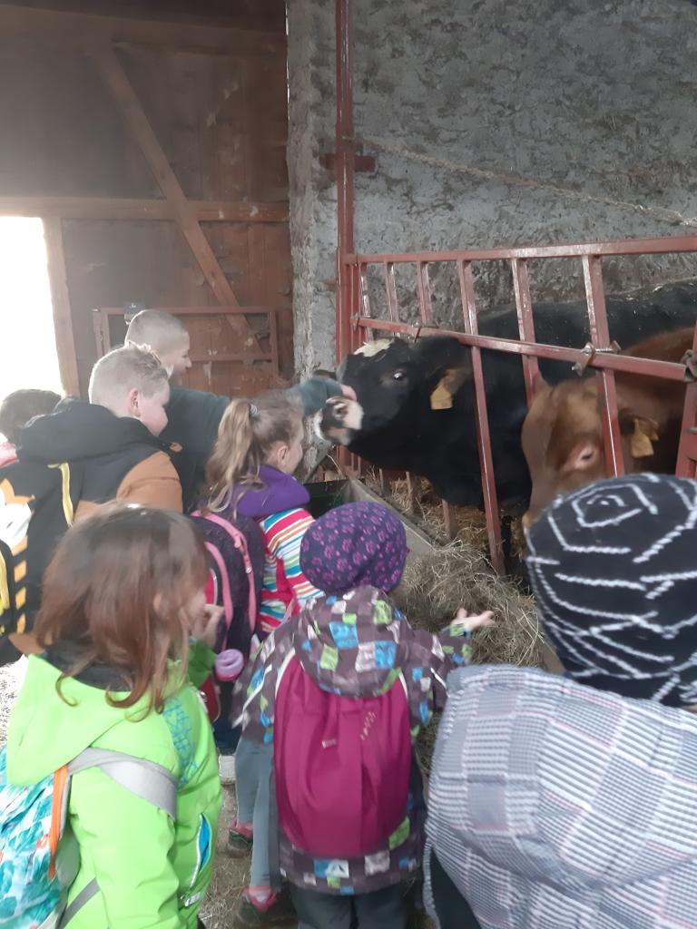 Ve čtvrtek 27. 4. se II. a III. třída vydaly společně na statek do Holubova. Vystoupili jsme v Třísově a odtud jsme vyrazili pěšky lesem do Holubova. Po cestě jsme pozorovali přírodu a viděli jsme srnky. Na statku nás přivítal pan Cudlín. A provedl nás celým hospodářstvím. Děti si mohly pohladit telátko, jehně a králíčky. Velkou atrakcí byla možnost sednout si do traktoru. Cestou zpátky jsme si zahráli poznávací hru, která děti moc bavila. Z Holubova jsme jeli vlakem a pak pěšky z nádraží do školy. Výlet se náramně vydařil a už teď se těšíme na další návštěvu statku.