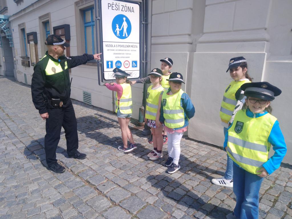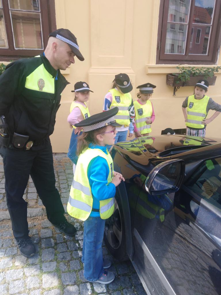 Dne 12.6. se II. třída zúčastnila akce Výkon služby v ulicích. Na služebně Městské policie Český Krumlov si pro nás pan Šebela připravil zábavný program. Ukázal nám předměty, které policisté ke své práci potřebují. Všem dětem nasadil pouta a vyzkoušeli jsme si i práci s vysílačkou. Poté děti dostaly policejní vesty a čepice a vydali jsme se do ulic města kontrolovat pořádek. Dokonce jsme rozdali neukázněným řidičům několik pokut. Z celé akce byly všechny děti nadšené.