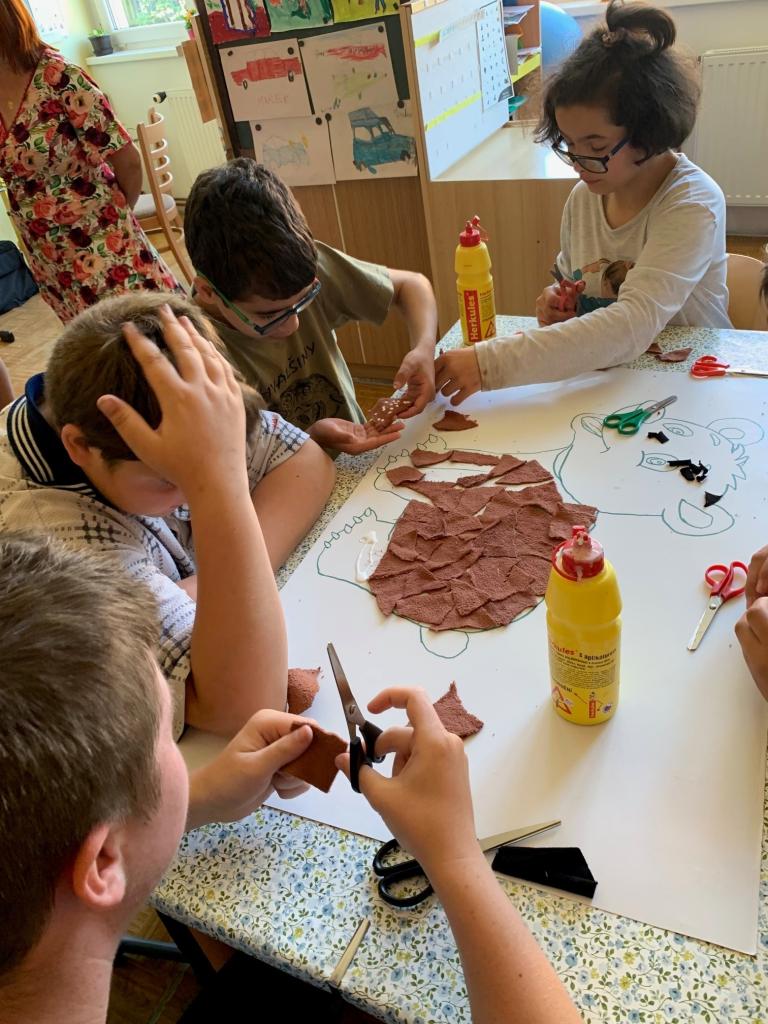Dne 1. 6. 2023 měly třídy I.S, II.S, IV.A, IX.S projektový den pod názvem „Den s medvědy.“ A to doslova. Vše se opravdu „točilo“ kolem medvědů. Nejprve byla pohádka o krumlovských medvíďatech, potom se medvědi textilní koláží vyráběli, a nakonec byl ještě medvědí dort. Děti to moc bavilo a o dortu ani nemluvím. Jen se po něm „zaprášilo“. To nejlepší však následovalo nakonec. Návštěva skutečných medvědů na krumlovském zámku. A viděli jsme je opravdu zblízka! Samozřejmě jsme nešli s prázdnou. Přinesli jsme jim to, co mají nejraději: mrkvičky a piškoty. Myslím, že děti svůj svátek oslavily moc pěkně.