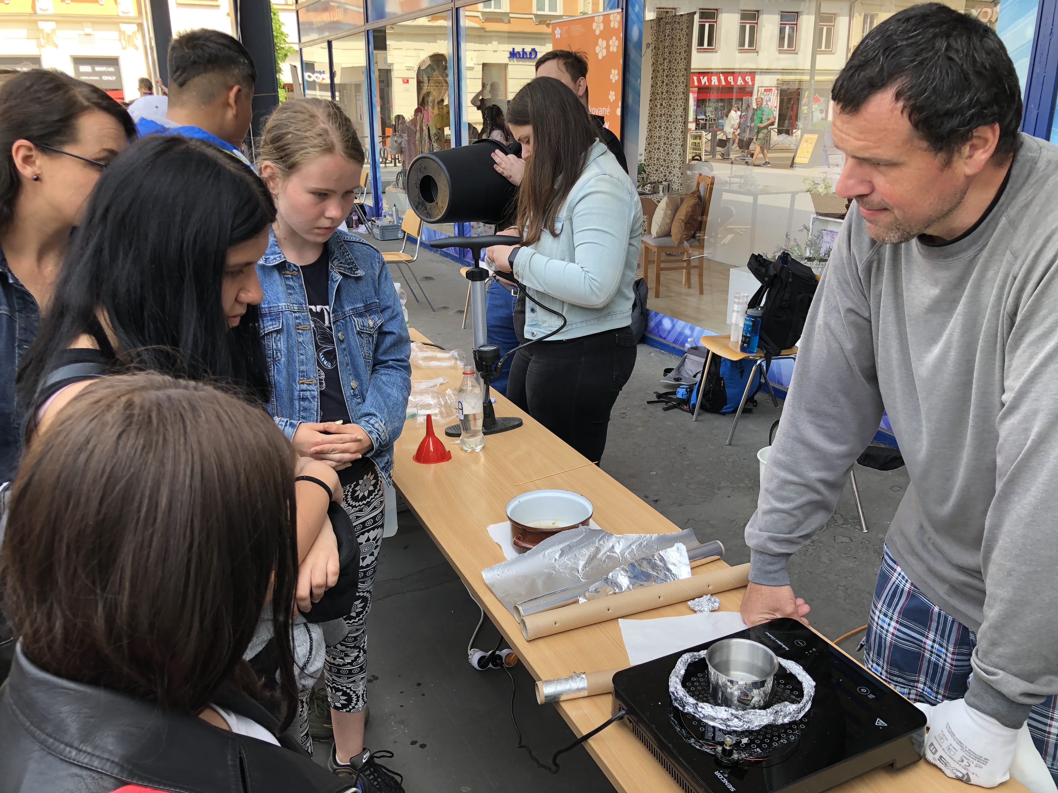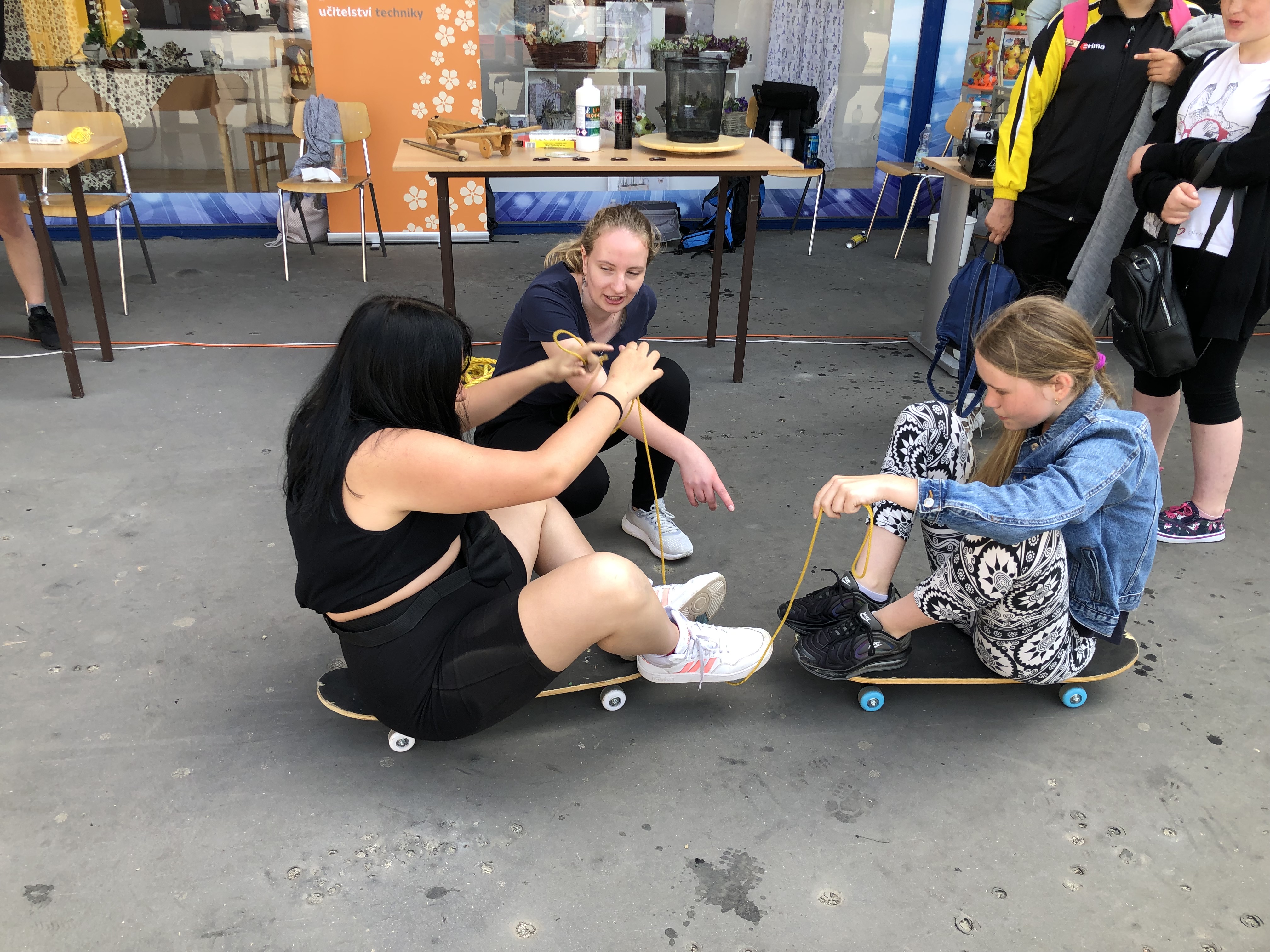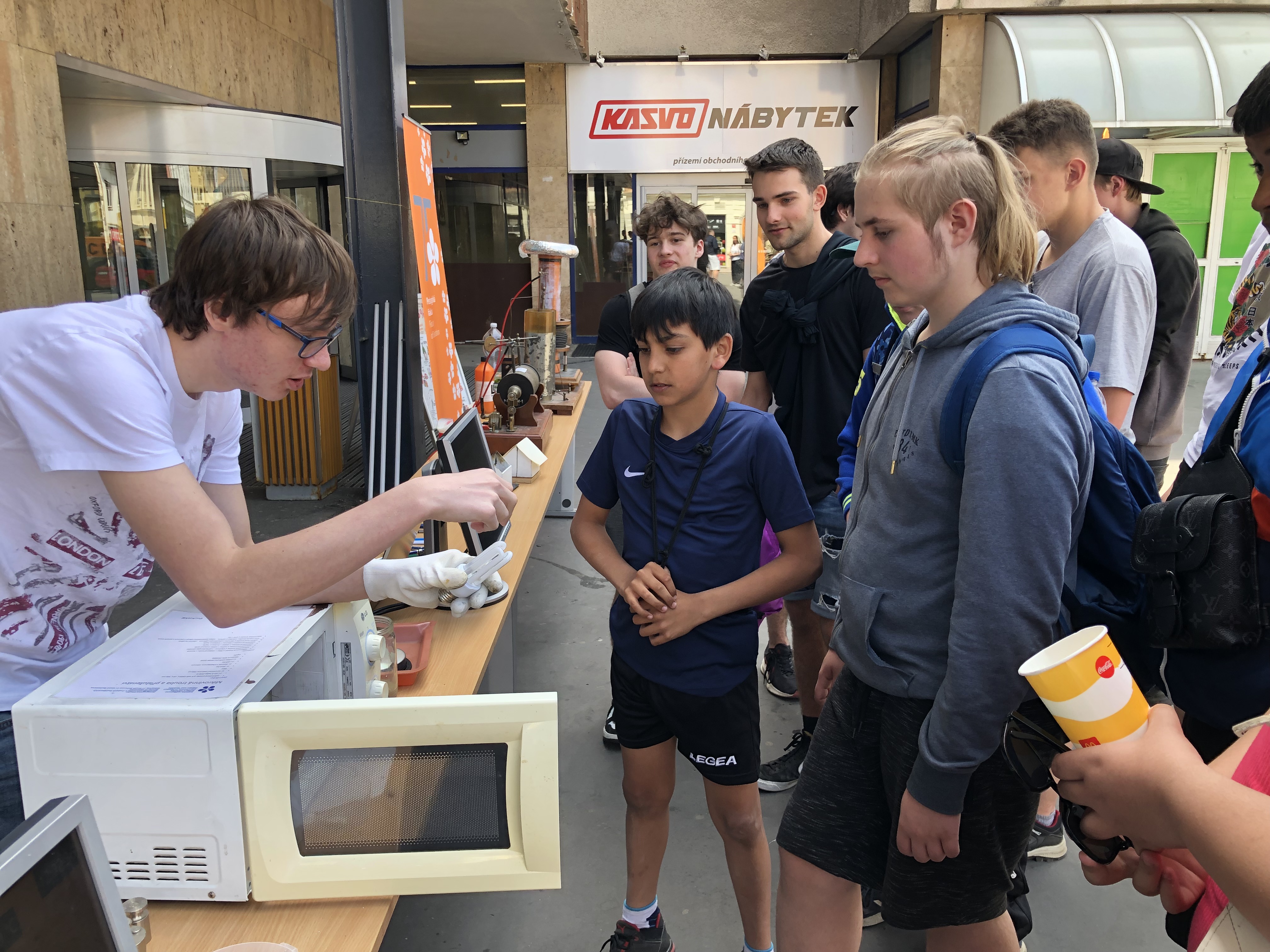 V. a VII. třída vyrazily do Českých Budějovic, kde se konal den s Armádu. K vidění byla rozmanitá vojenská technika, děti si mohly prohlédnout interiéry vojenských vozů a popovídat si s vojáky o jejich službě. Na místě byly také složky IZS, které vystavovaly svou techniku. Po akci s vojáky se třídy přesunuly do Jeronýmovy ulice, kde pedagogická fakulta připravila praktické ukázky výuky fyziky. Přímo na ulici si tak děti mohly samy vyzkoušet, jak vznikají blesky, jak se šíří zvuk, jak funguje elektromagnetická indukce, nebo se podívat, jak to vypadá, když vzniká tornádo.