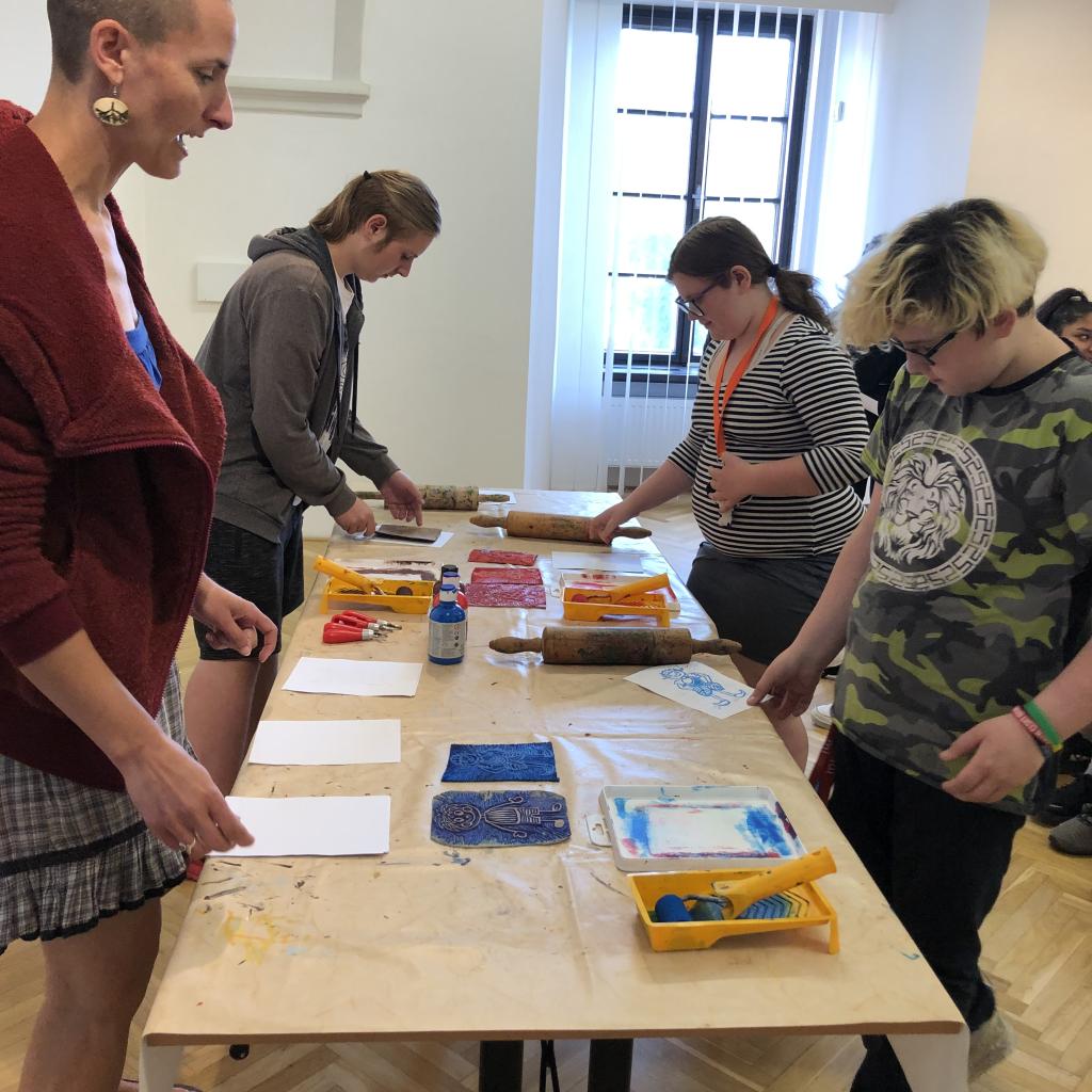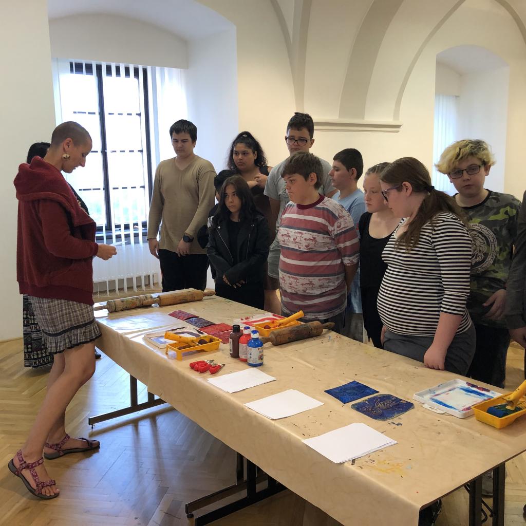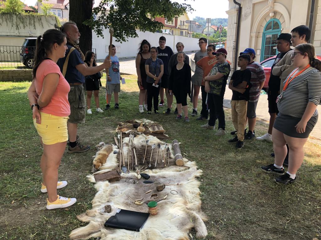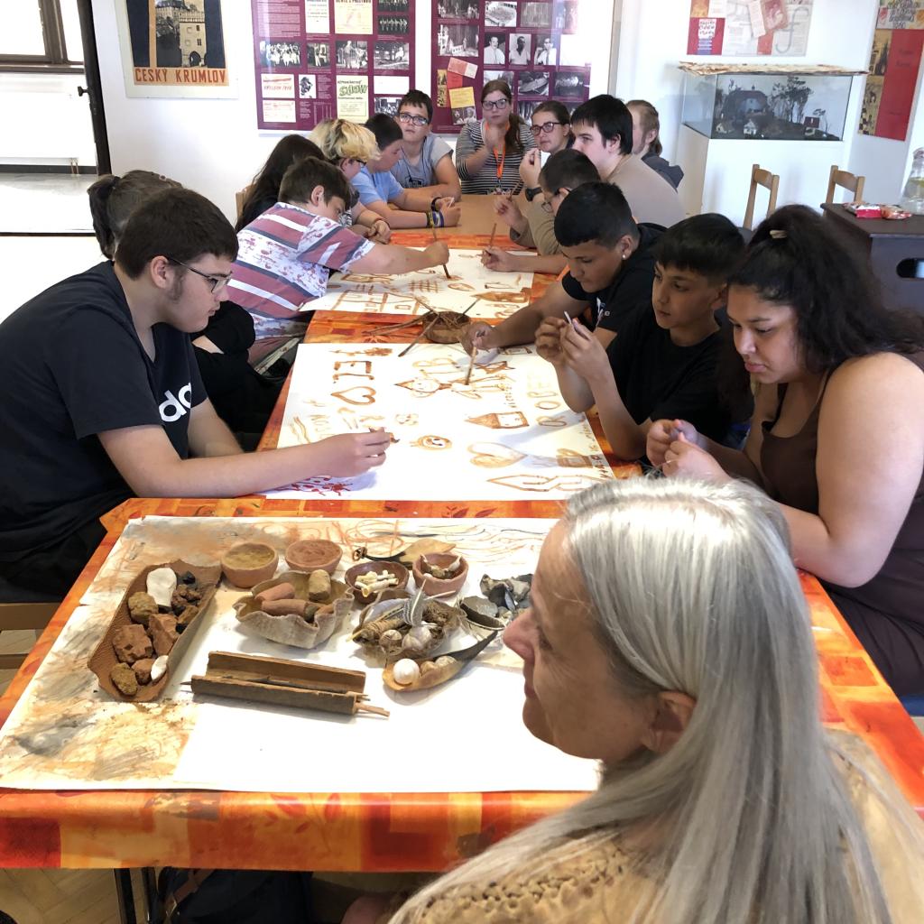 Muzeum ČK si připravilo zážitkový program pro žáky základních škol. Postupně jsme prošli celé muzeum. V každém oddělení byla pro děti připravena přednáška a malý workshop. Vyráběli jsme mýdlo, tisk linorytem, malovali pomocí přírodnin jako pravěcí lidé, stříleli z luku.