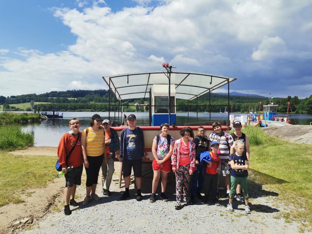 Dne 15. 6. se třídy I.S, II.S, IV.A a IX.S vydaly na výlet do Horní Plané. Zážitek již byla cesta vláčkem. Po příjezdu na konečnou stanici se všichni vydali na prohlídku Horní Plané, kterou zakončili návštěvou skvělé cukrárny U Dvou koček. Po posilnění se vydali k jezeru. Nechali se svézt převozem na druhý břeh. Při plavbě si mohli všichni zatroubit. I to byl zážitek. Po obědě na pláži se šli vykoupat. Studená voda nebyla překážkou. Skotačili, cákali, plavali. Zbývající hráli na pláži fotbal a různé hry s malými míčky. Potom už je čekala veselá zpáteční cesta domů. Výlet si všichni jaksepatří užili.