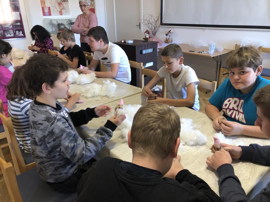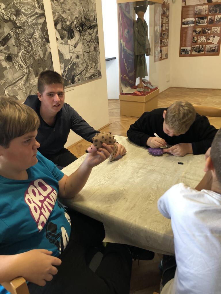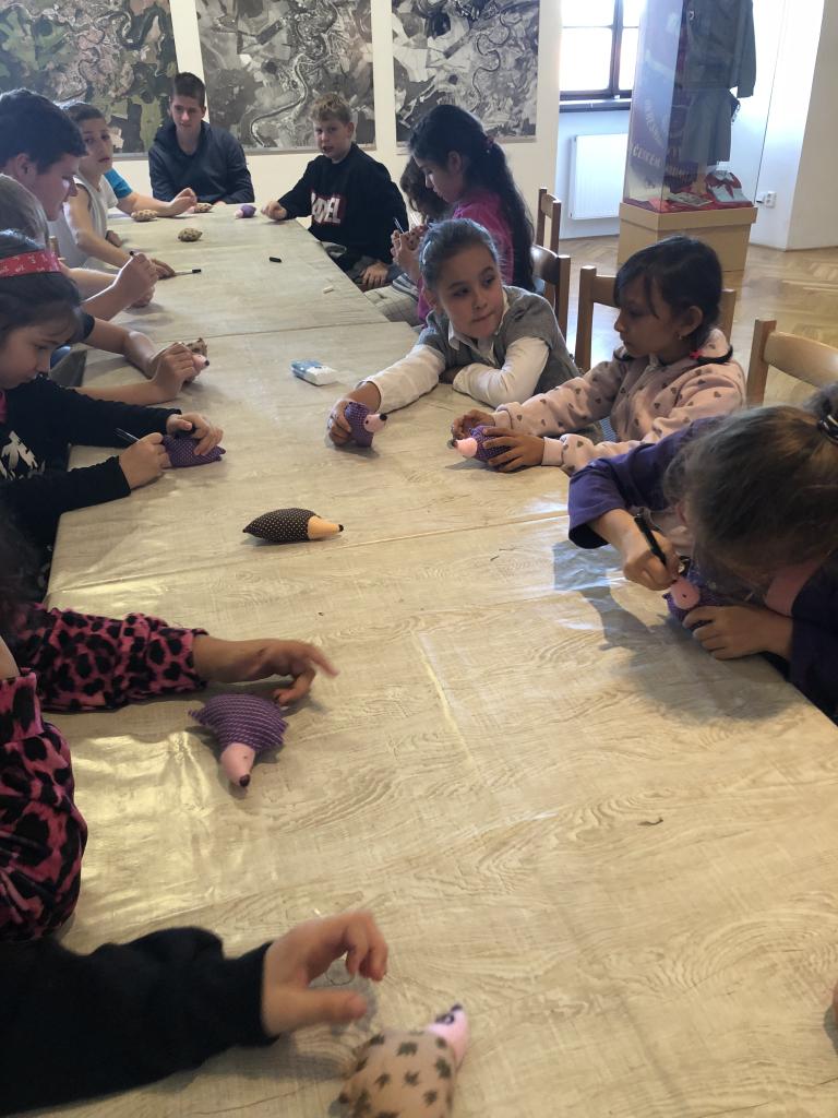 V pondělí jsme byli tvořit v Muzeu v Českém Krumlově. Dostali jsme polštářek ve tvaru ježka, do kterého žáci našťouchávali vatu. Po naplnění celého ježečka vatou jsme dírku zašili a fixou dokreslili nos a oči. Na závěr si děti na svého ježečka nalepily srdíčka. Výtvory se nám povedly, moc děkujeme paní Caisové a Losenické za skvělý nápad.