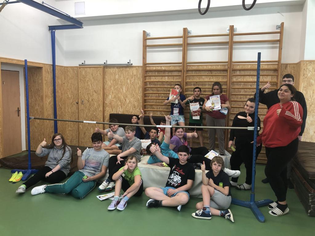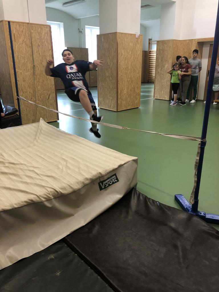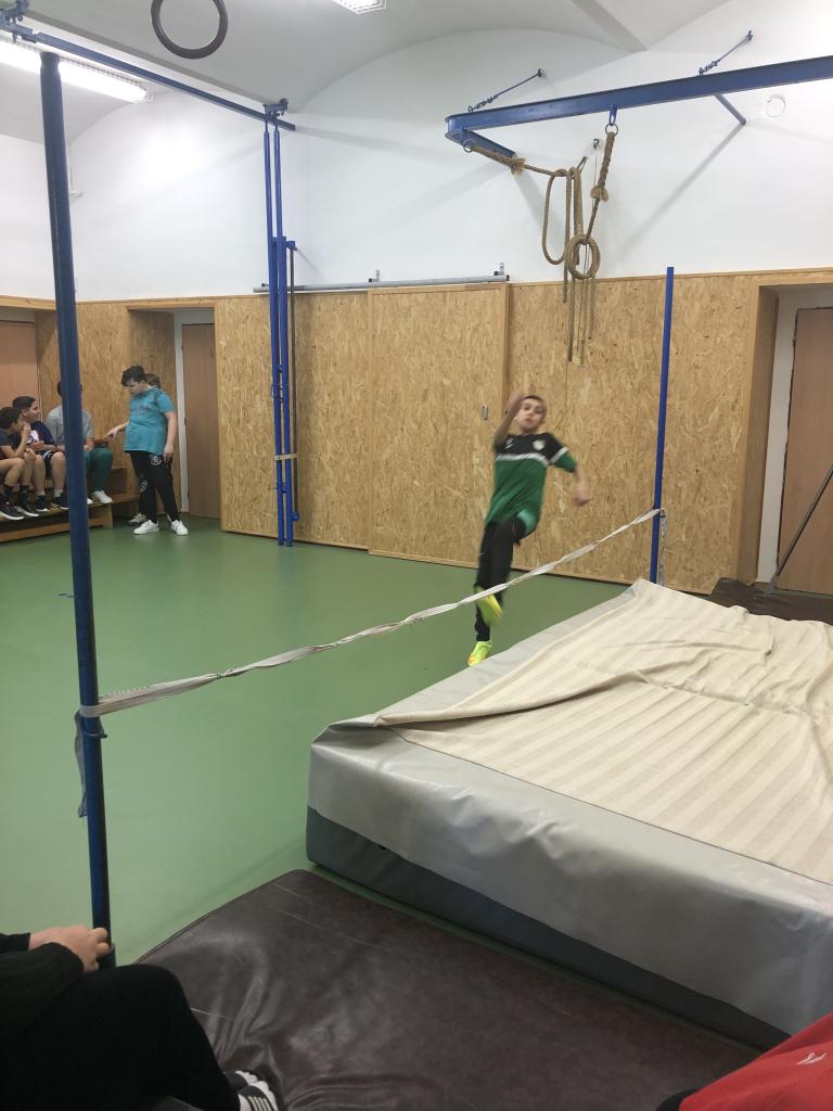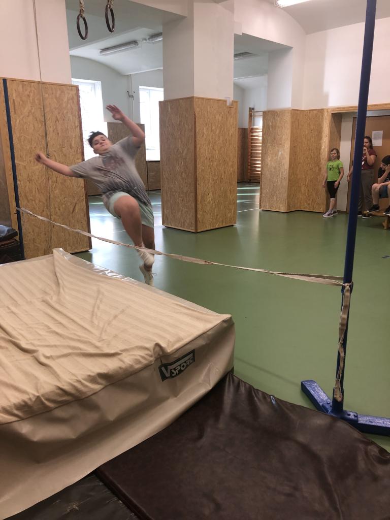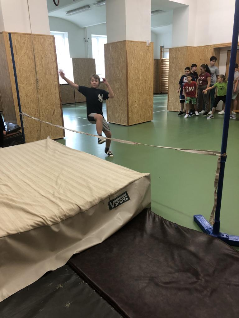 Žáci IV. a VIII. třídy si zasoutěžili ve skoku do výšky. Soutěž se odehrávala v tělocvičně naší školy. Nejdříve skákali přes gumové lano, potom si zkusili skákat přes tyč jako na opravdové soutěži.