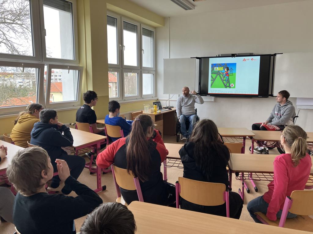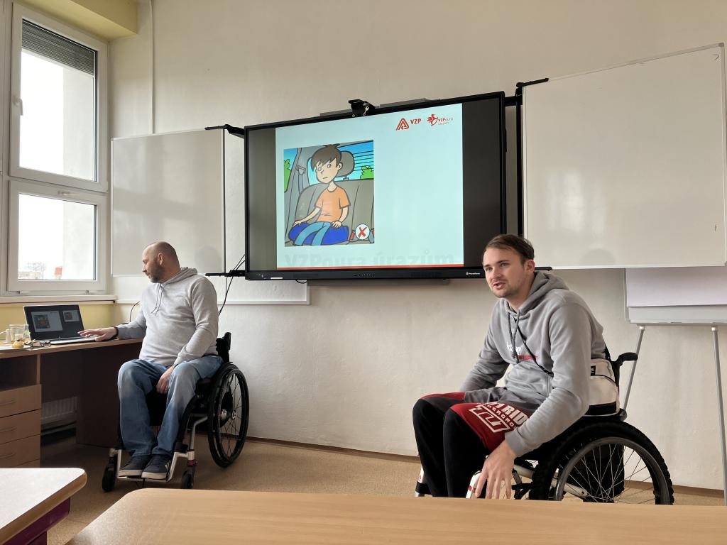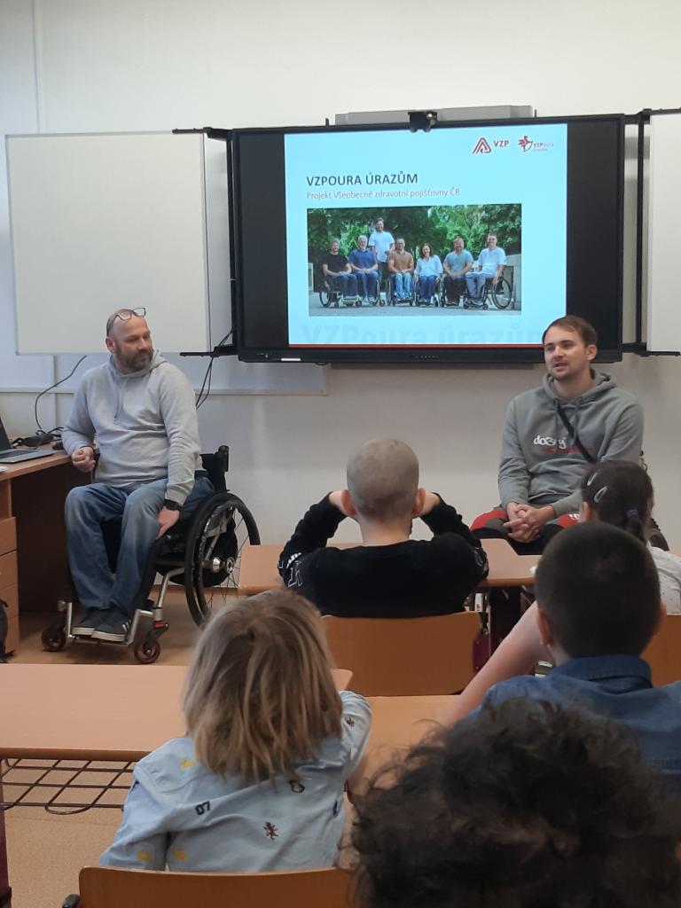 Jeden z nejzajímavějších preventivních programů tohoto roku, čekal žáky celé školy, napříč ročníky. Navštívili nás 2 vozíčkáři, aby nám vyprávěli příběhy svého života, jak ochrnuli a jak se s tím vyrovnali. Zároveň žáky poučili o bezpečnosti na silnici, bezpečnosti při sportech, ale také o tom, že se třeba nemají houpat na židli – i takto totiž ochrnulo mnoho mladých lidí.